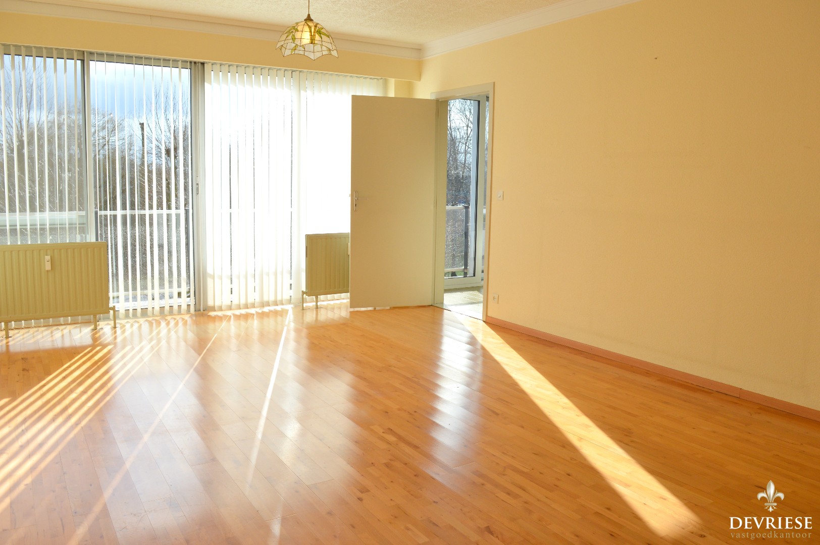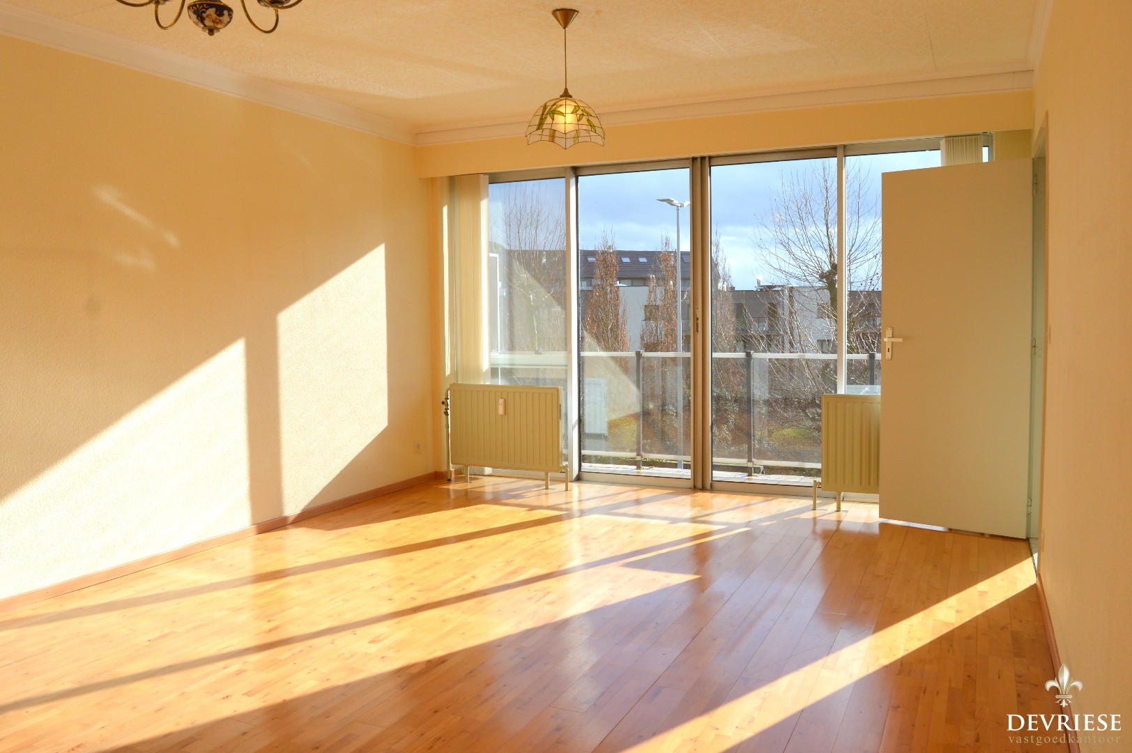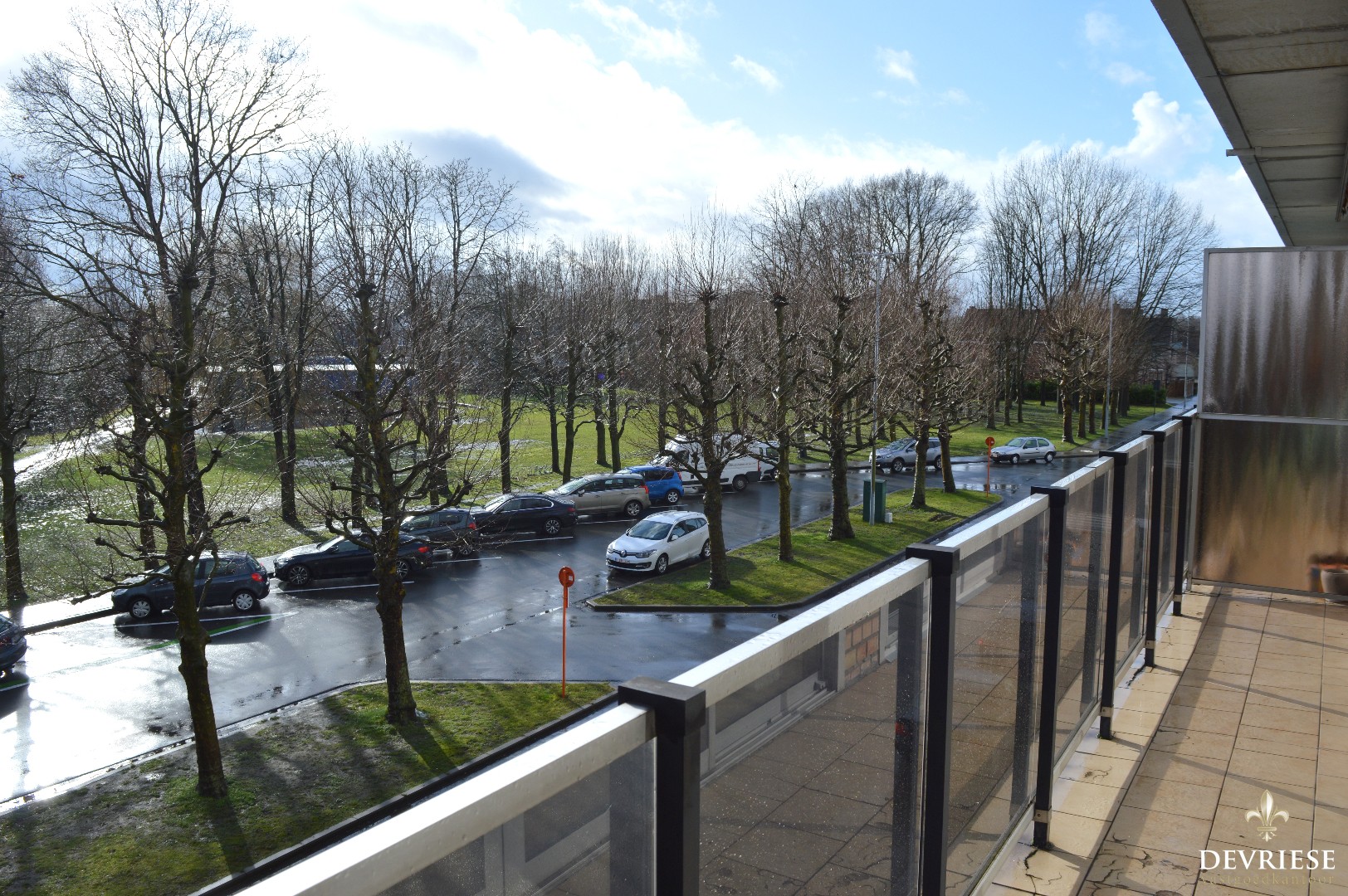 Vanop het terras vooraan het appartement geniet je van een aangenaam groen zicht.