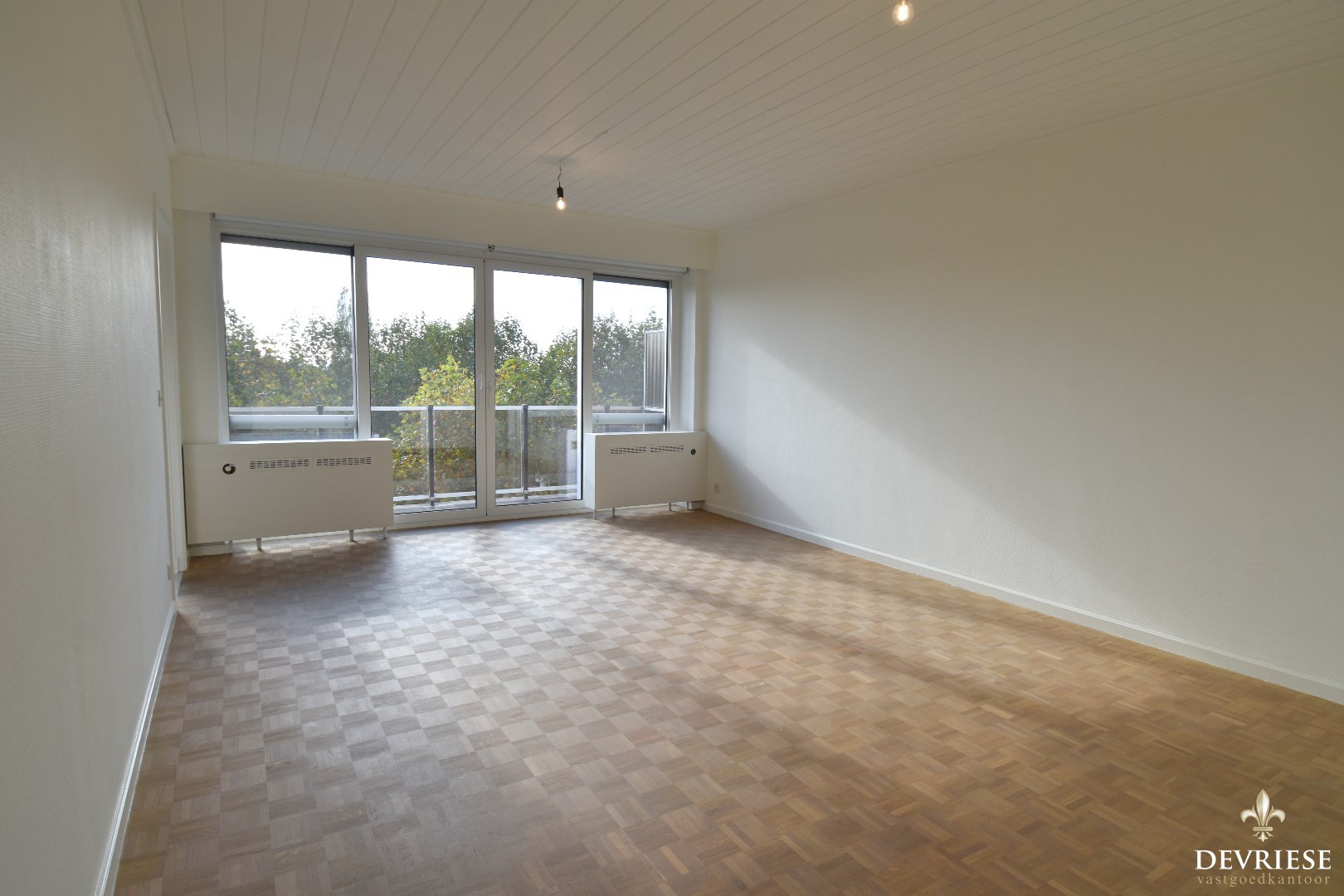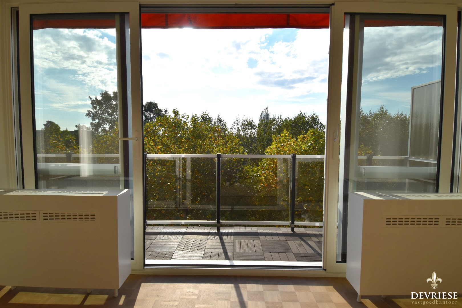 Vanop het terras vooraan het appartement geniet je van een aangenaam groen zicht.