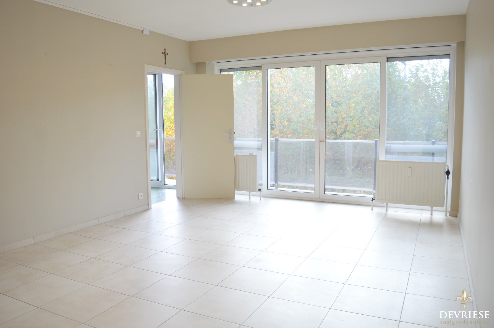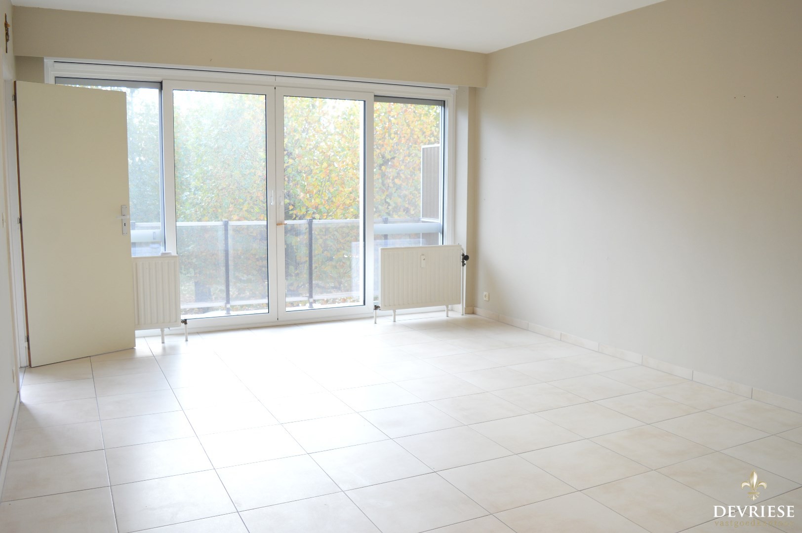 Vanop het terras vooraan het appartement geniet je van een aangenaam groen zicht.