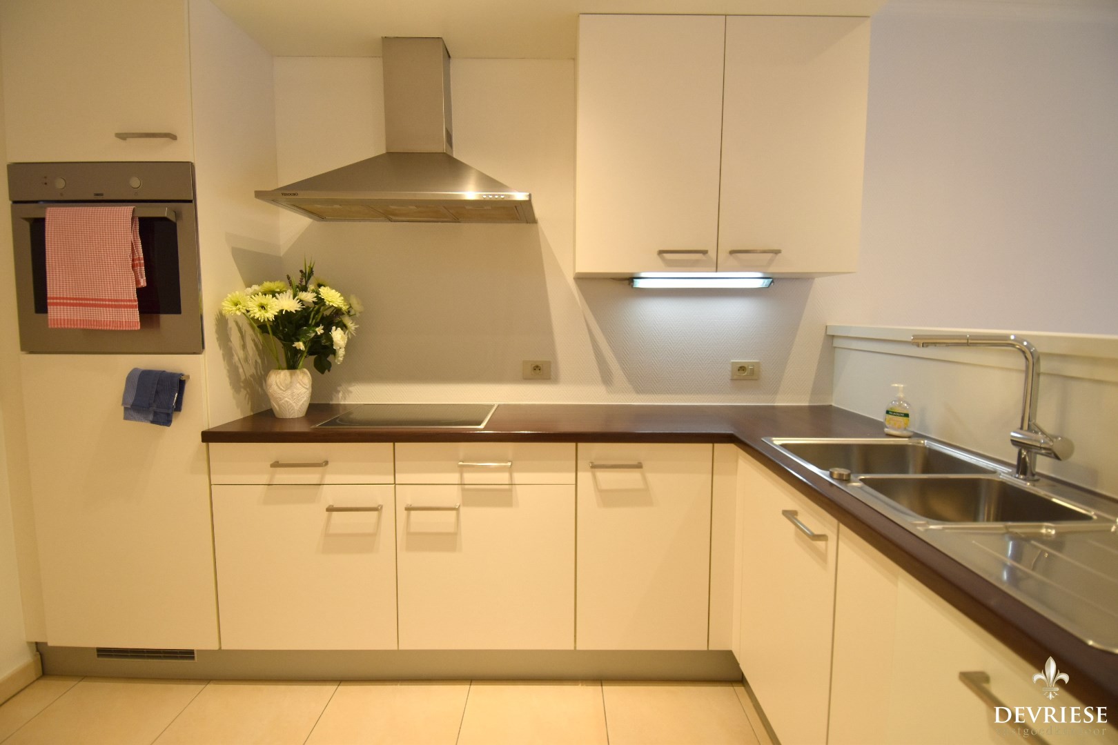 De lichtrijke leefruimte is de eyecatcher van dit appartement, en dankzij de aansluitende open keuken, volledig uitgerust met een keramische kookplaat, oven, vaatwasser en inbouwkoelkast, wordt koken een plezier. Naast de keuken bevindt zich een ruime berging met aansluiting voor een wasmachine – praktisch en handig!