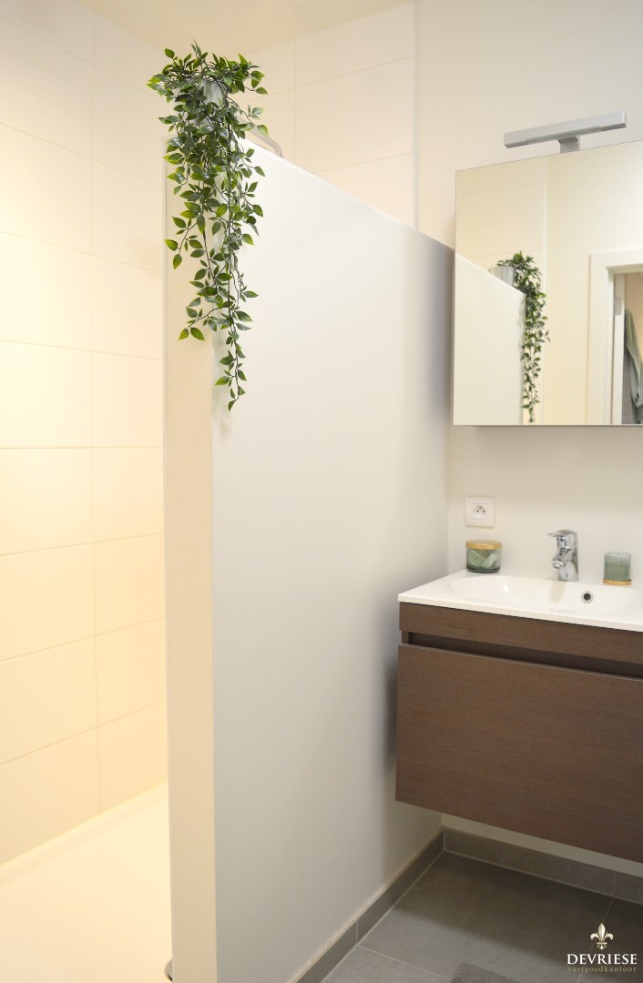 Het appartement bestaat uit een inkomhal met apart toilet, ingerichte open keuken, 2 slaapkamers, badkamer met inloopdouche en extra bergruimte met aansluiting voor wasmachine. Vanuit de leefruimte is er toegang tot het ruime terras waar je volop van de avondzon. In het gebouw is er bovendien een lift aanwezig.