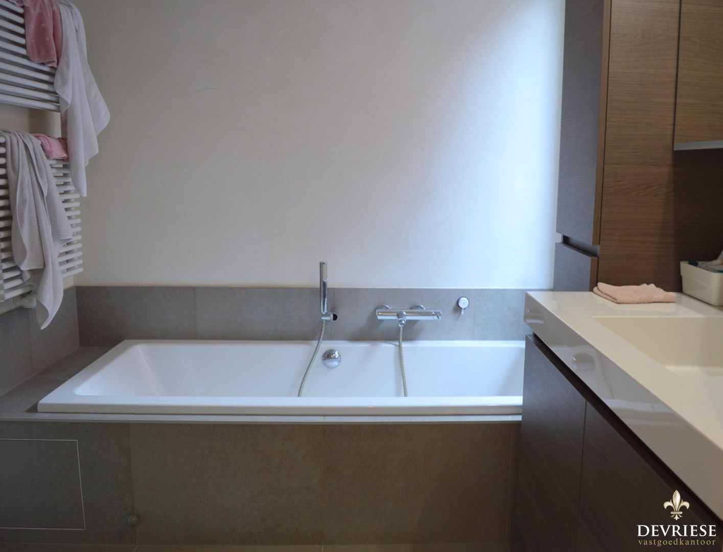Een moderne badkamer met inloopdouche én bad, lavabomeubel en een tweede toilet. Verder vinden we ook nog 2 slaapkamers.