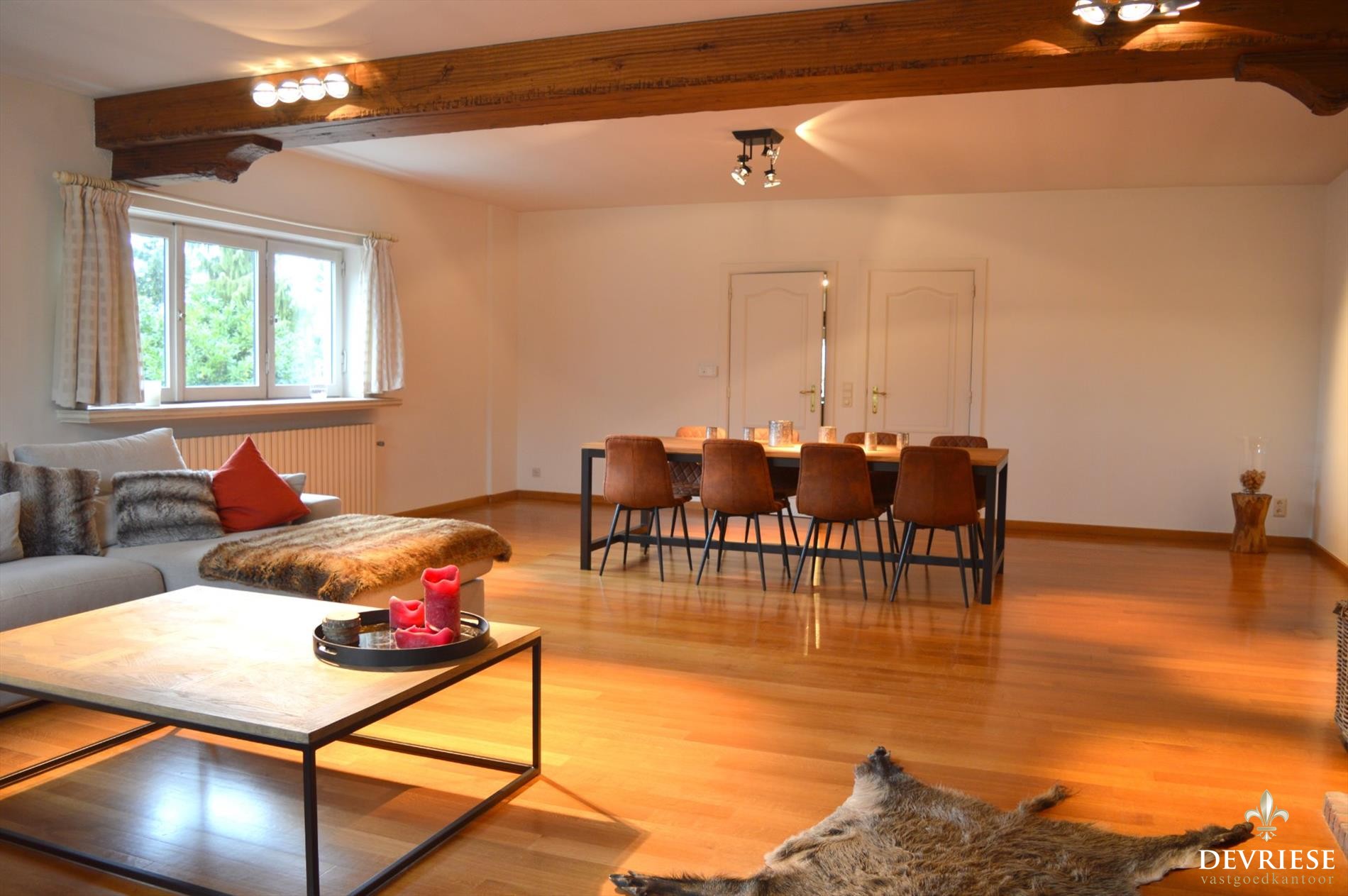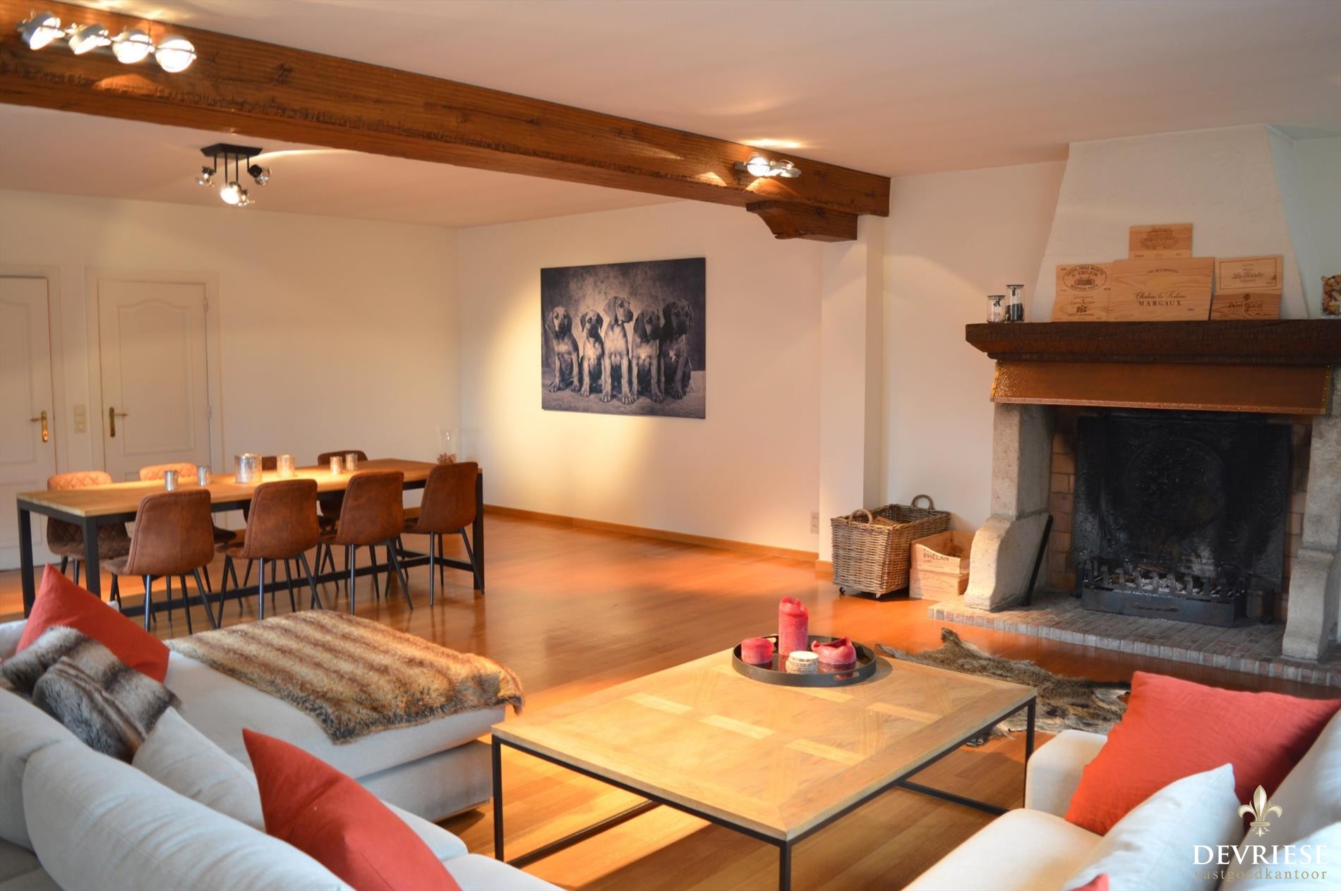 U bent op zoek naar een zeer ruim 3-slpk appartement, mét garage, groot zonneterras én nog een extra tuintje, dan moet u deze topper vast en zeker zien. Heel verzorgd en zeer ruim appartement met de inkom op de zijkant. Hier bevindt zich de garage en de toegang tot de gemeenschappelijke kelder. Op de eerste verdieping het leefgedeelte met zeer lichtrijke en sfeervolle woonkamer met open haard en aansluitend de ingerichte keuken. Vanuit de keuken is er toegang tot het ruime terras en de bijhorende tuin. Tevens op de eerste verdieping een gastentoilet en extra bergruimte.