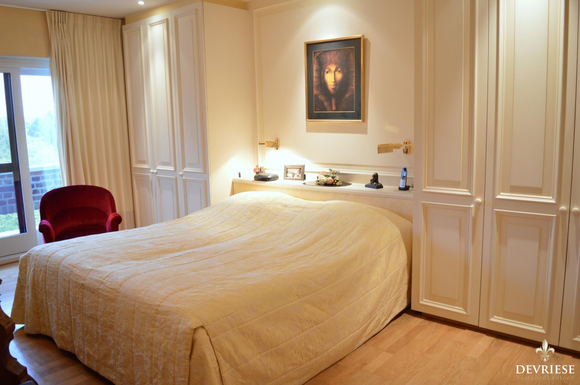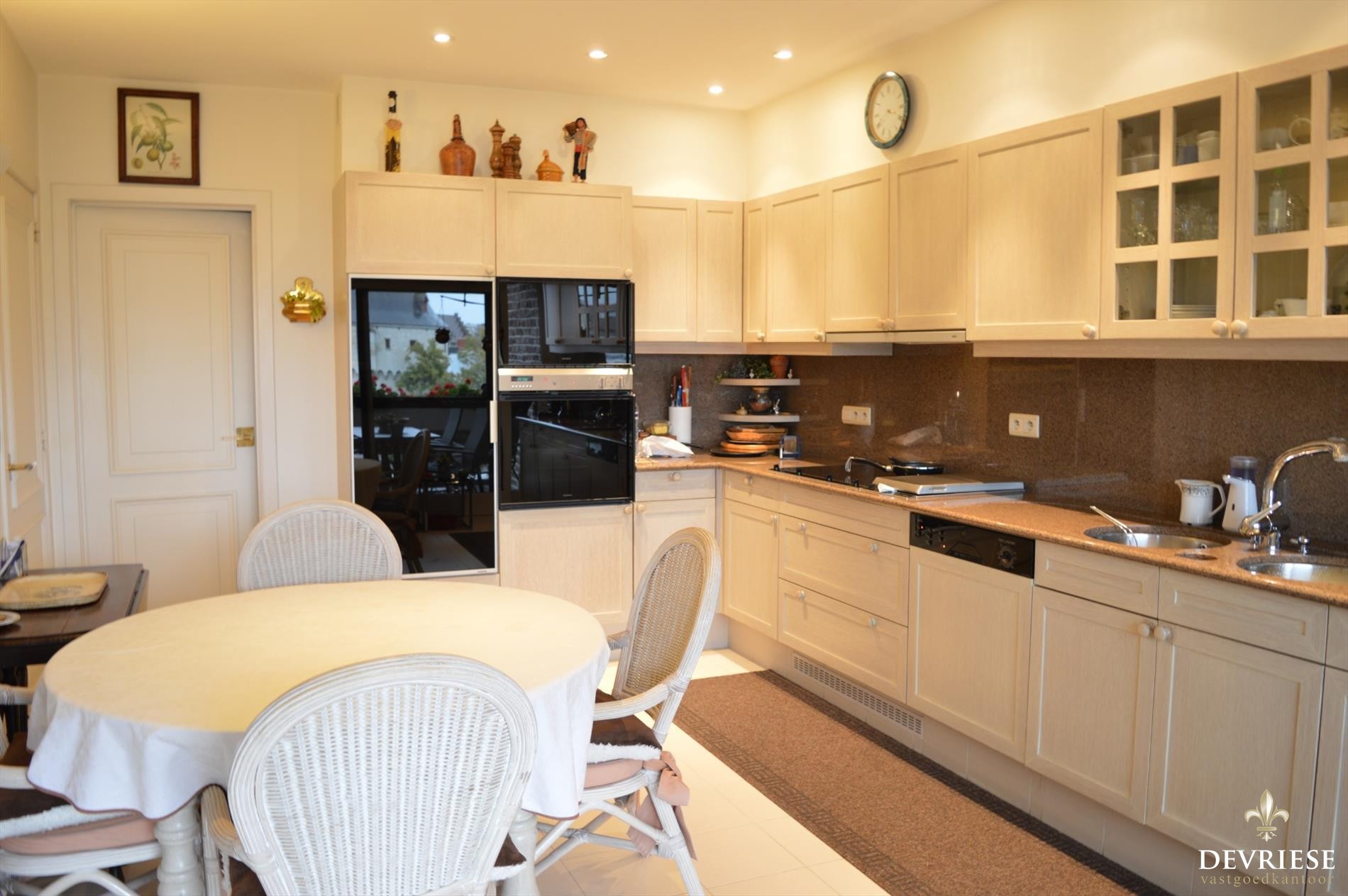 Zowel in de woonkamer als keuken kunt u genieten van een prachtige zicht op de Broeltorens en de verlaagde Leieboorden. Ook op het mooie terras is het volop genieten van het mooie Kortrijk en is het zonnetje bijna heel de dag door van de partij gezien de zeer gunstige ZW-Oriëntatie.