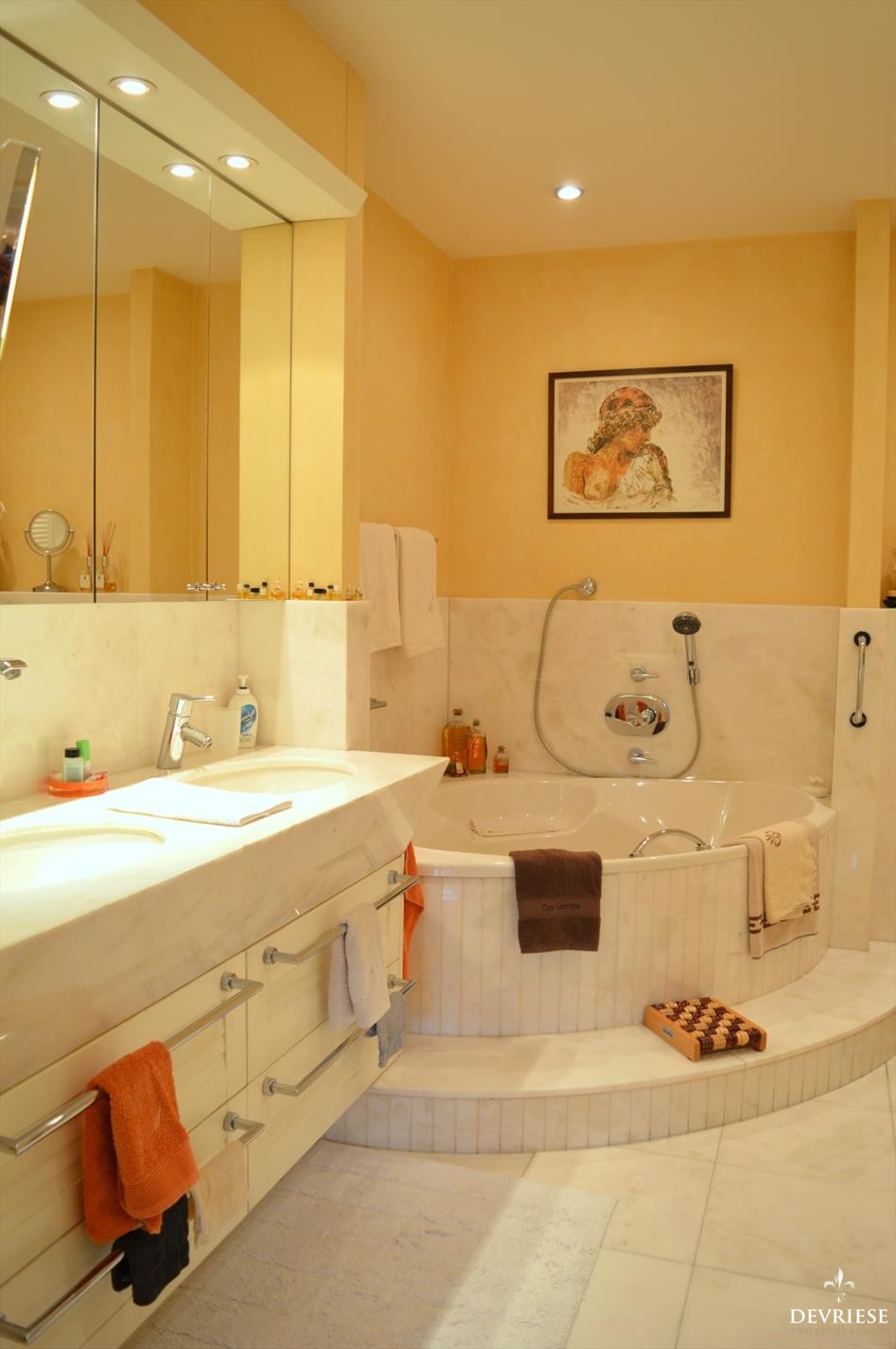 U komt binnen in een prachtige hal, voorzien van een apart gastentoilet met vestiaire.