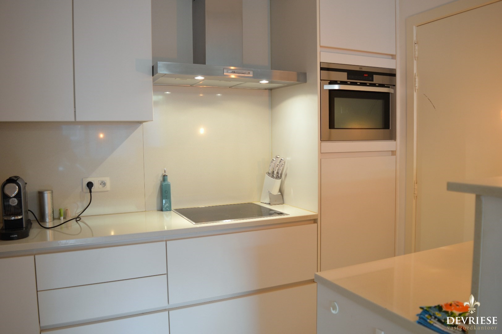 De volledig vernieuwde open keuken is uitgerust met kwalitatieve inbouwtoestellen en biedt voldoende kastruimte met aansluitend een berging.
