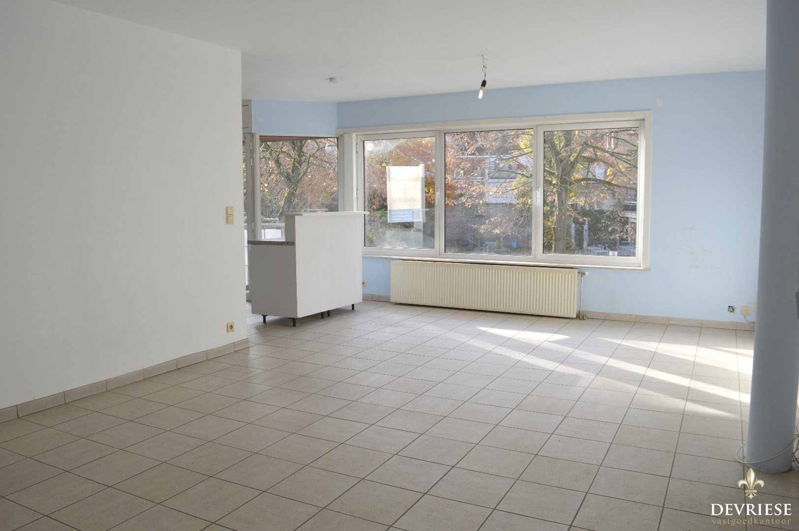 Badkamer met douche en enkele lavabo, zeer veel lichtinval, open keuken, dubbele beglazing en centrale verwarming.