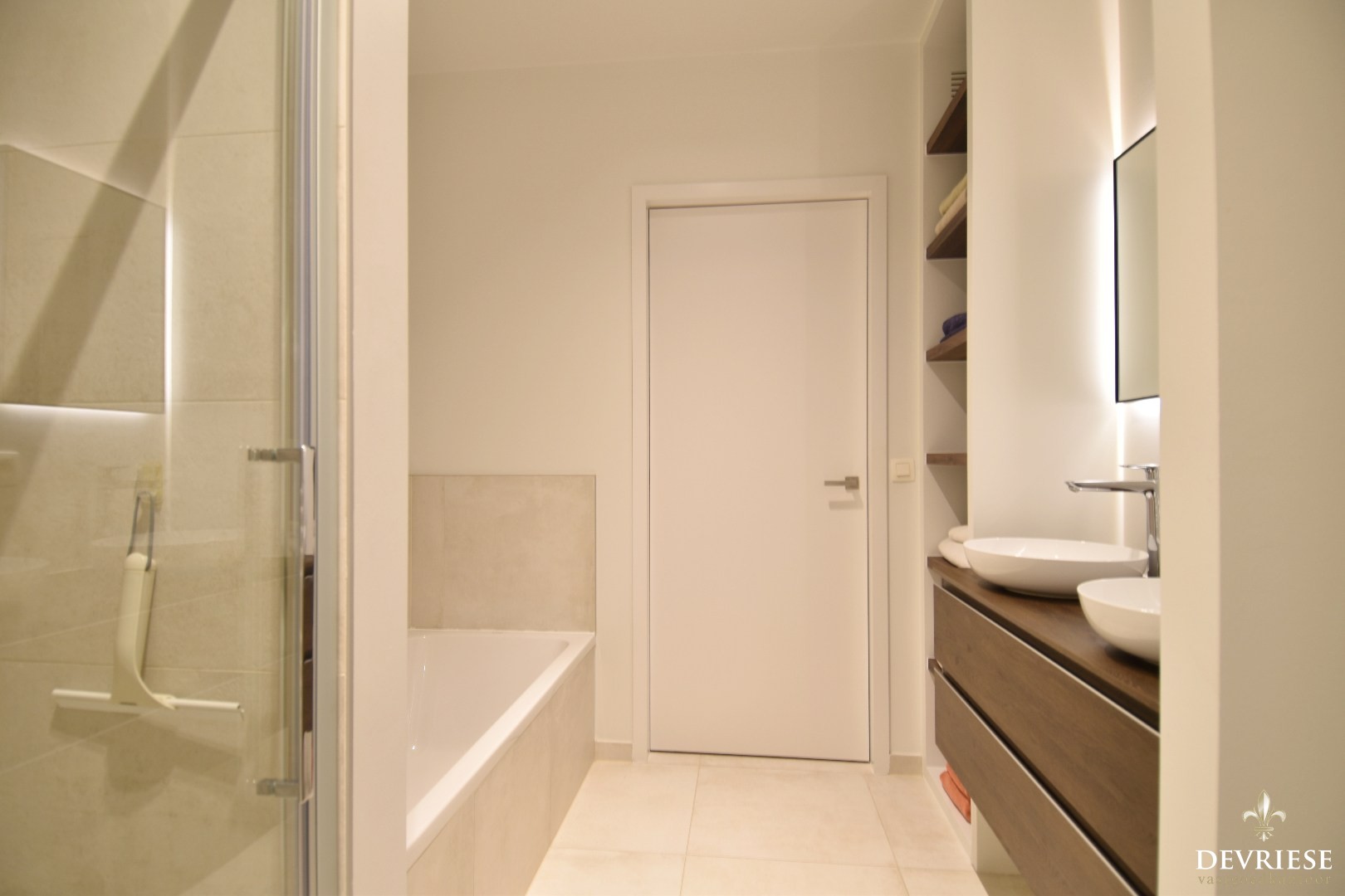 Verder is er de kwalitatieve badkamer met douche, bad, dubbele lavabo en toilet met daarnaast 2 slaapkamers.