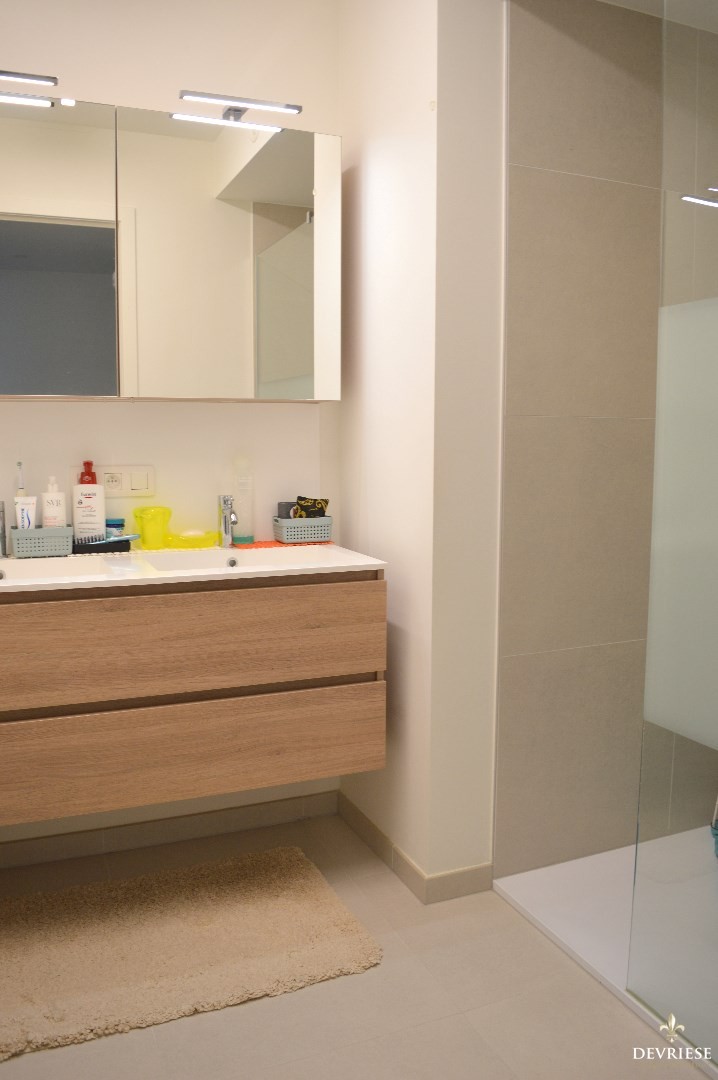 Verder is er de moderne badkamer met inloopdouche en dubbele lavabo, apart toilet, berging (met aansluiting voor de wasmachine) en 2 slaapkamers.