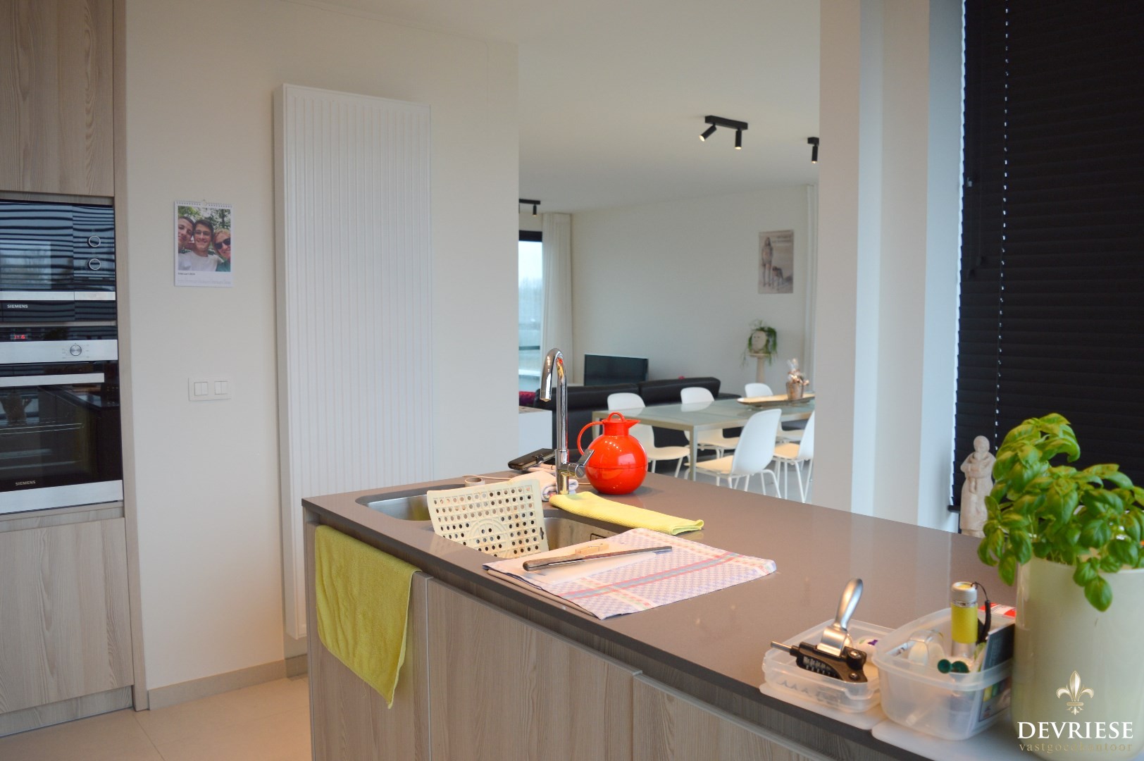 Ruime en lichtrijke open keuken voorzien van alle nodige toestellen (vaatwasmachine, inductiekookplaat, inbouwfrigo, microgolf en oven).