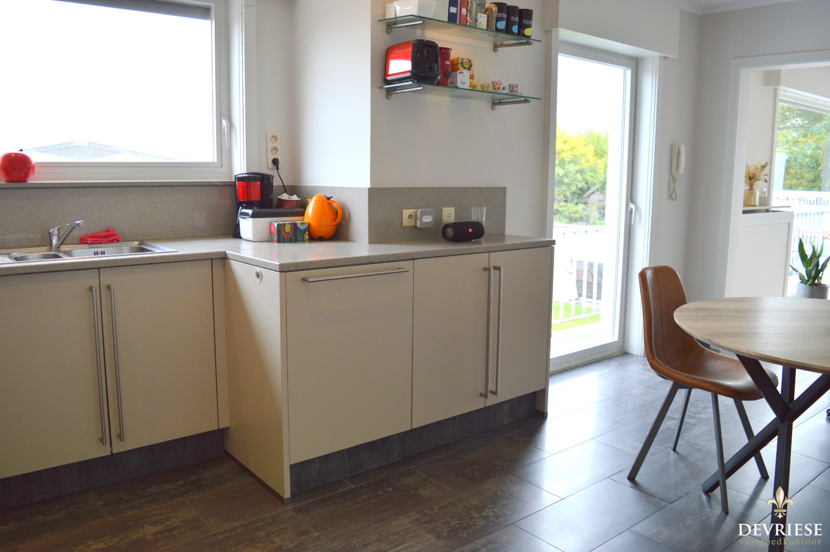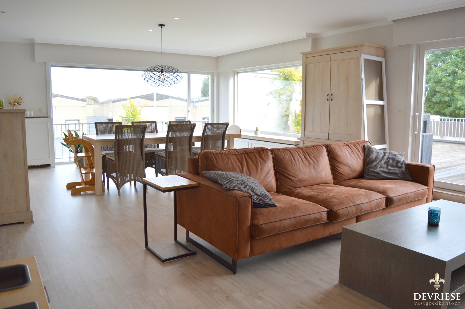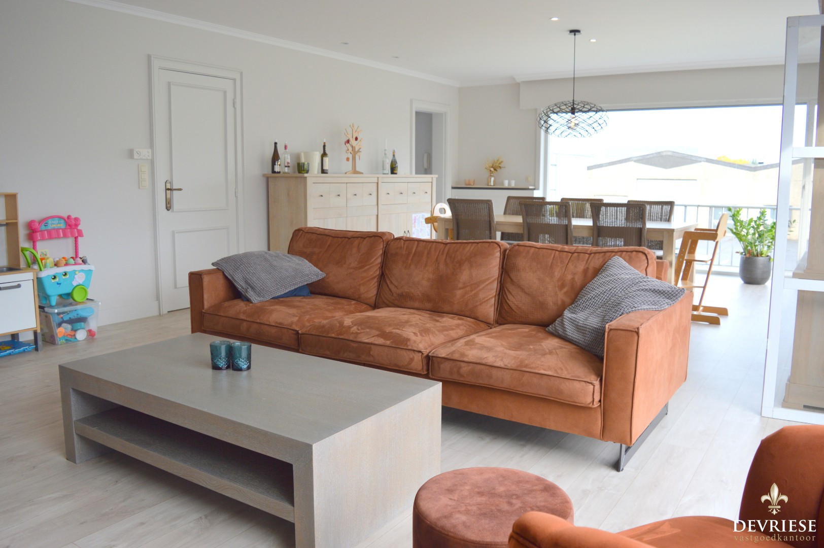 Vanuit de woonkamer is er toegang tot het aangename terras met een gunstige oriëntatie.