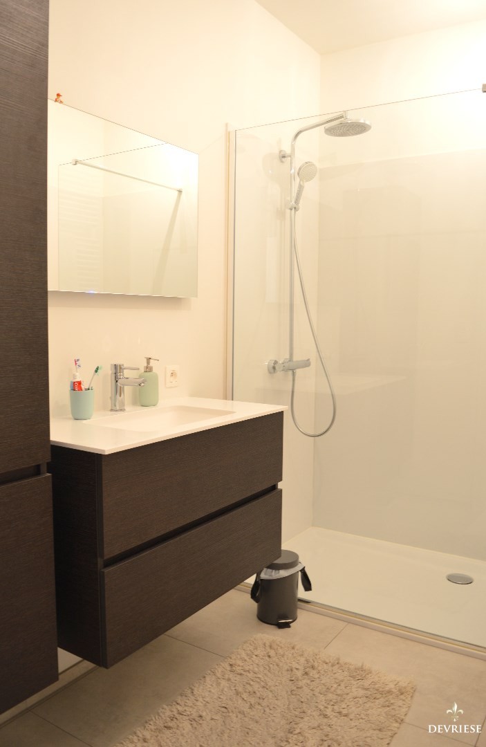 Een aparte inkomhal met het toilet, 2 ruime slaapkamers, mooie badkamer met inloopdouche en lavabo. Daarnaast de open keuken met aansluitend de opbergruimte voorzien van een aansluiting voor de wasmachine en de gezellige, ruime leefruimte met toegang tot het west georiënteerd terras.