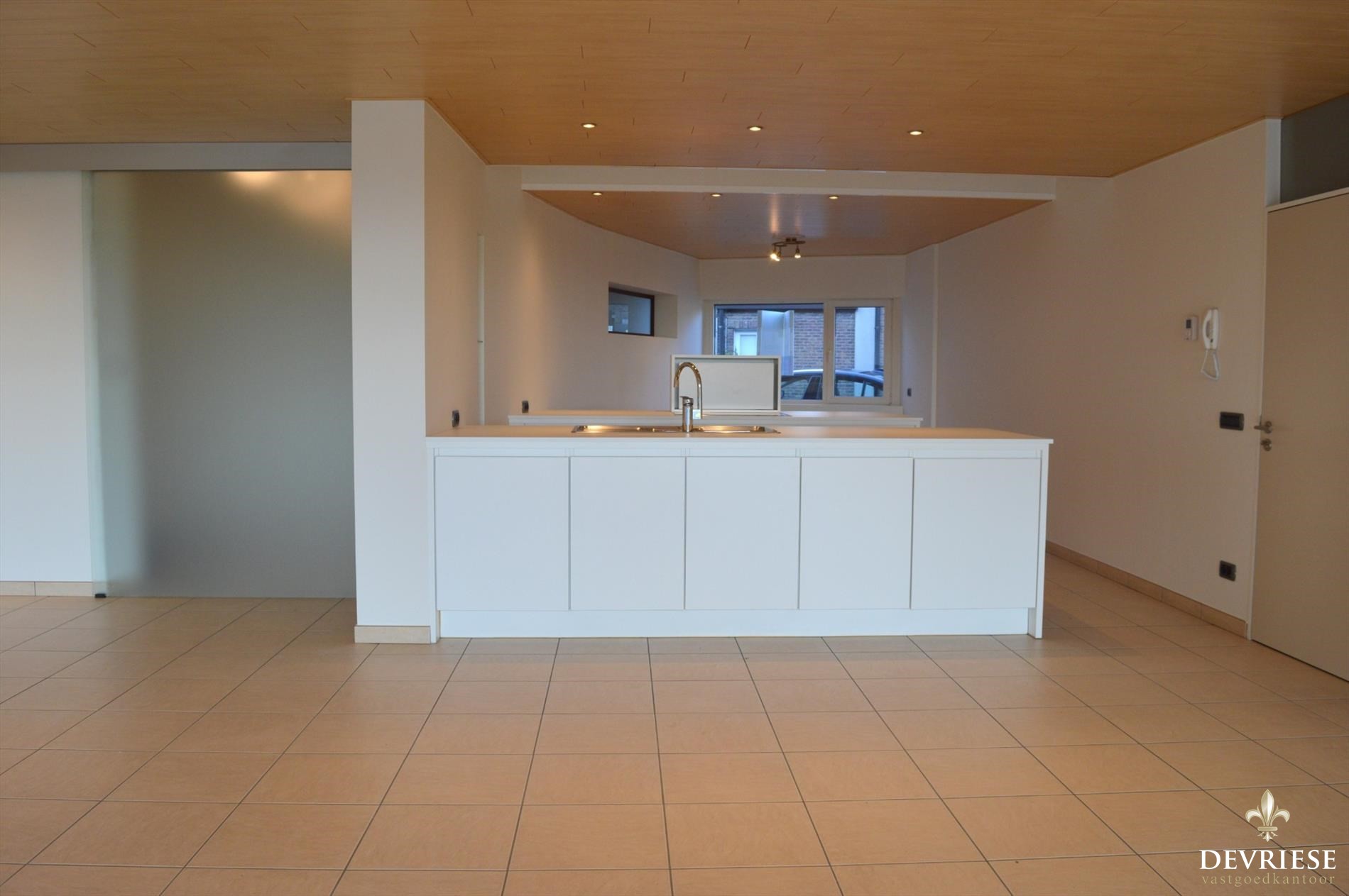 Binnenkomen in de inkomhal met toegang tot het woongedeelte. U wordt onmiddellijk betoverd door de ruime leefruimte met enorm veel lichtinval. Aansluitend de open woonkeuken, praktische berging, badkamer met toilet, douche en bad en de slaapkamer.