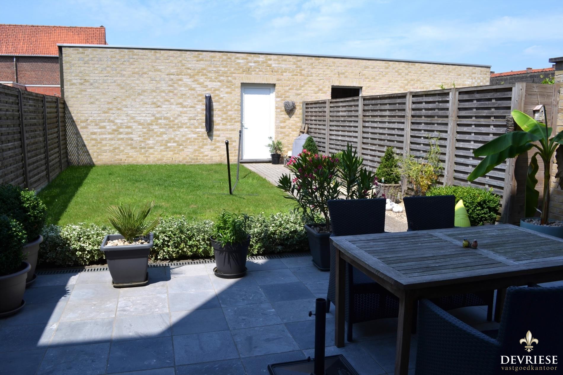 De tuin mét het terras zijn vast en zeker een grote troef. Daarnaast nog een ruime berging met aanliggend de garage met elektrische poort.