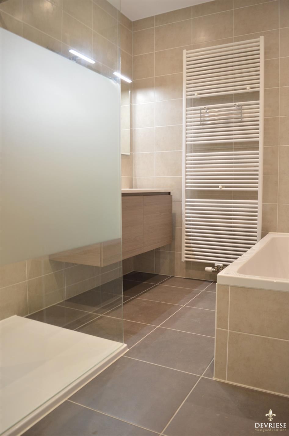 De living en de badkamer zijn voorzien van vloerverwarming alsook van zonnepanelen. M.a.w. een wel zeer energievriendelijk appartement met uitzonderlijke ... voorwaarden en te verwaarlozen verbruikskosten !