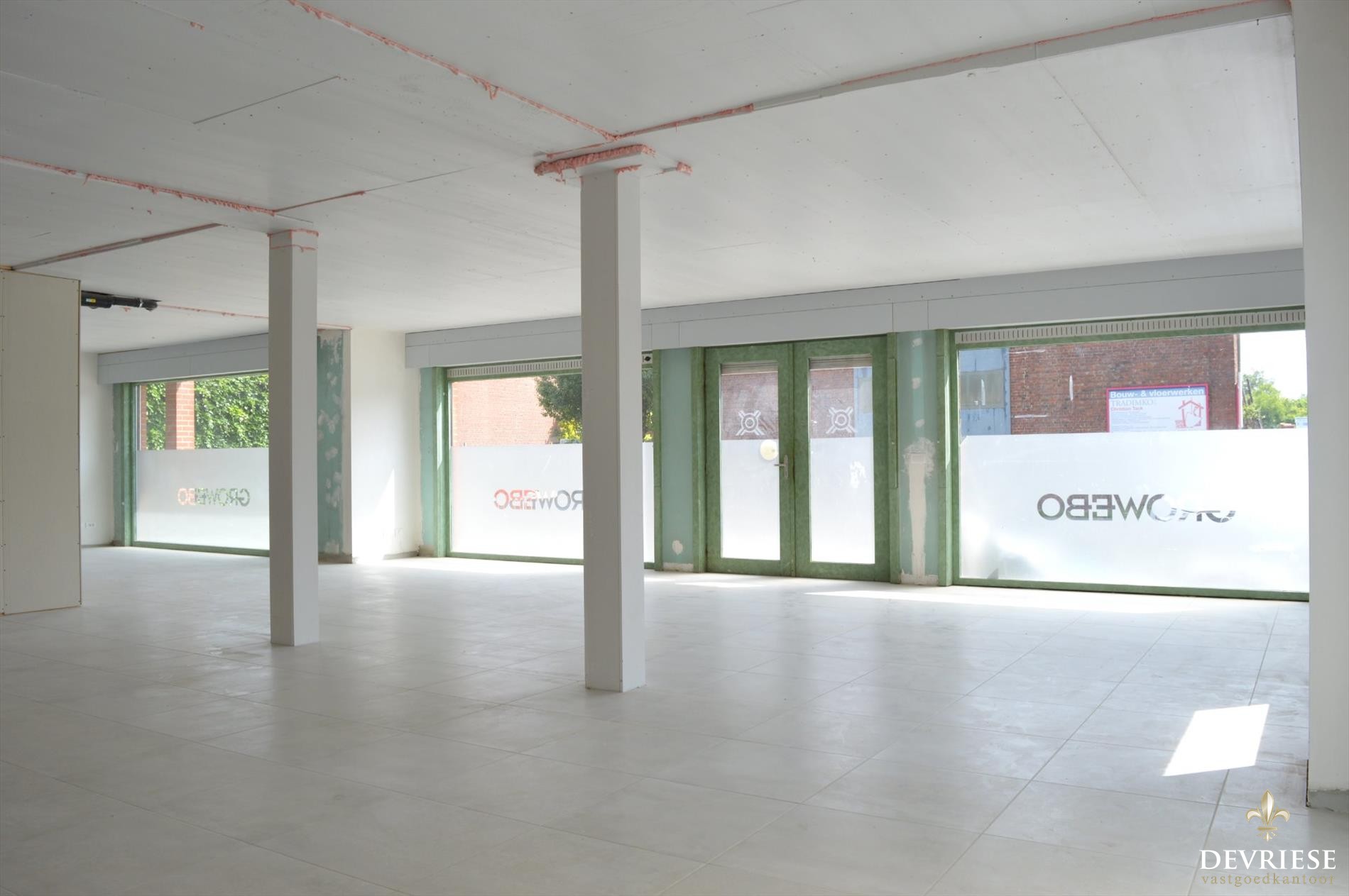 De handelsruimte vooraan is in totaal 110 m² met daarbij een handige extra bergruimte. Achteraan is alle sanitair volledig nieuw waaronder 2 toiletten en kitchenette.