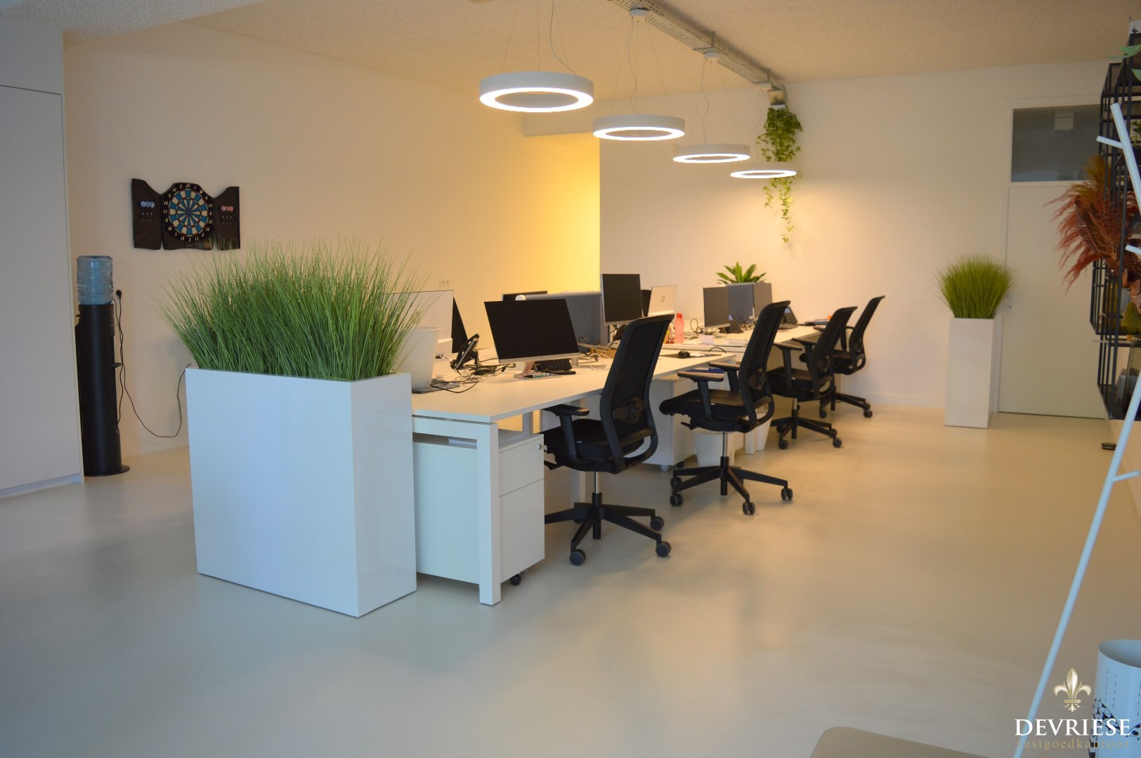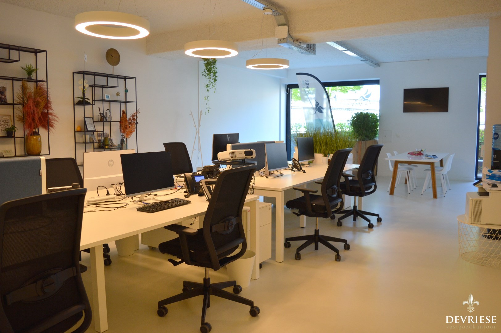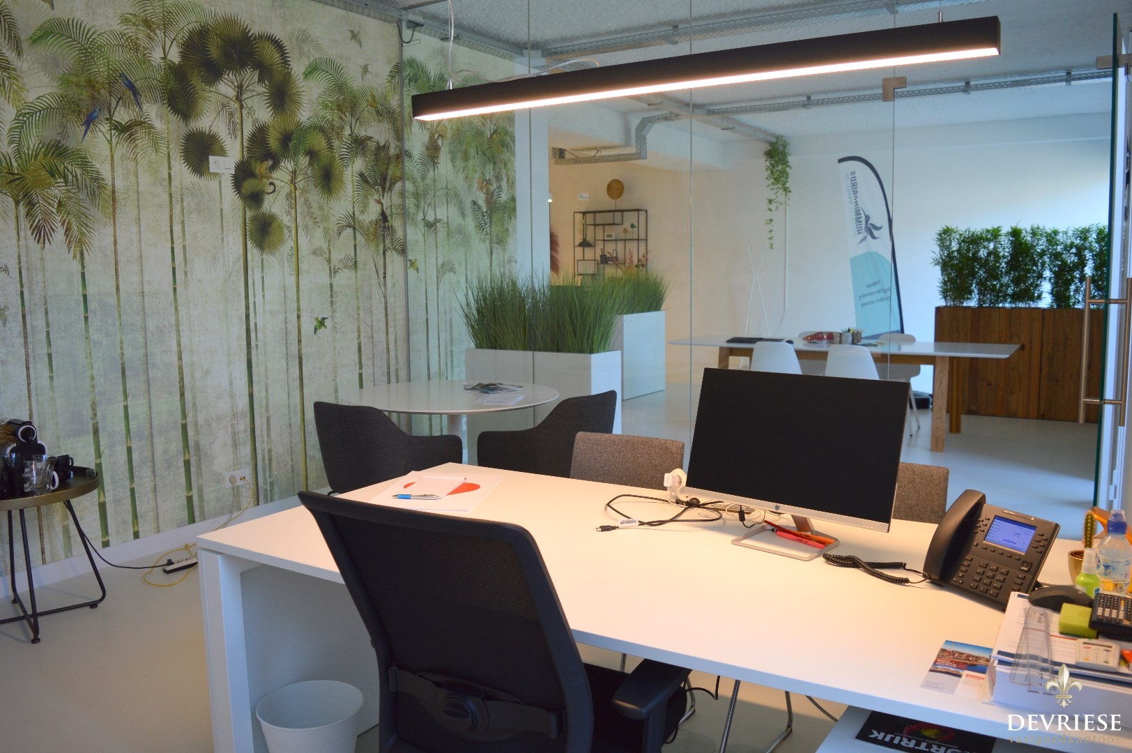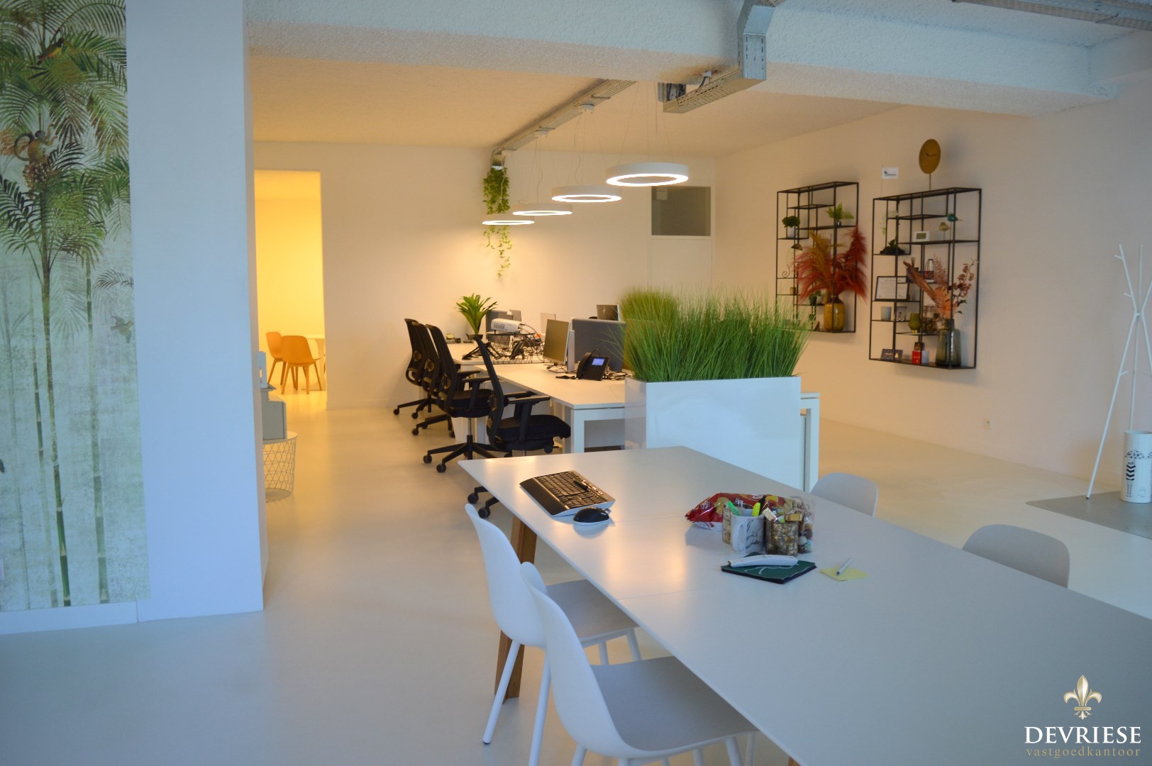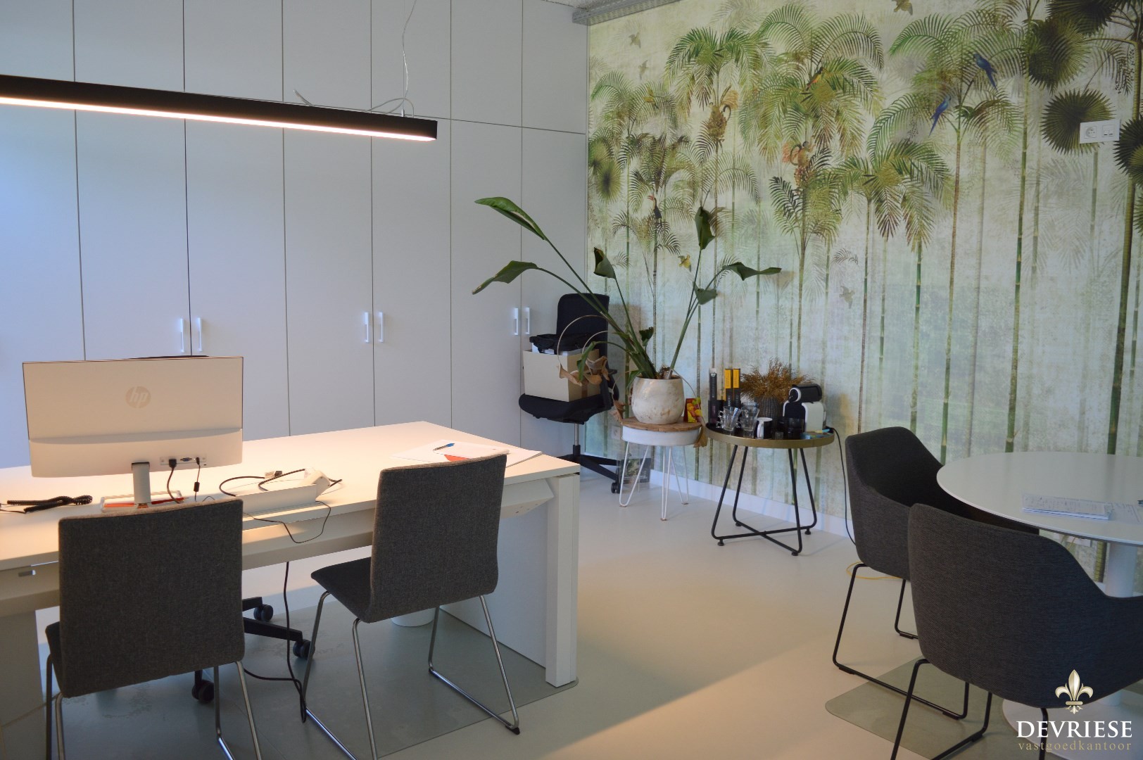 Deze kantoorruimte van 134 m² is tot de puntjes ingericht, afwerking met kwalitatieve materialen, inbouwspots, enz..