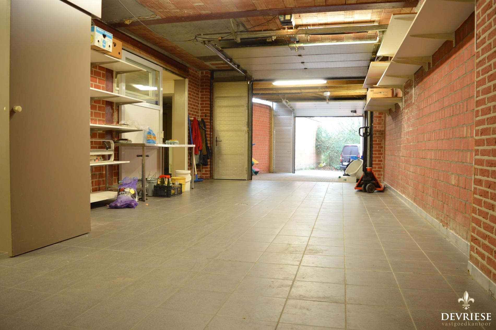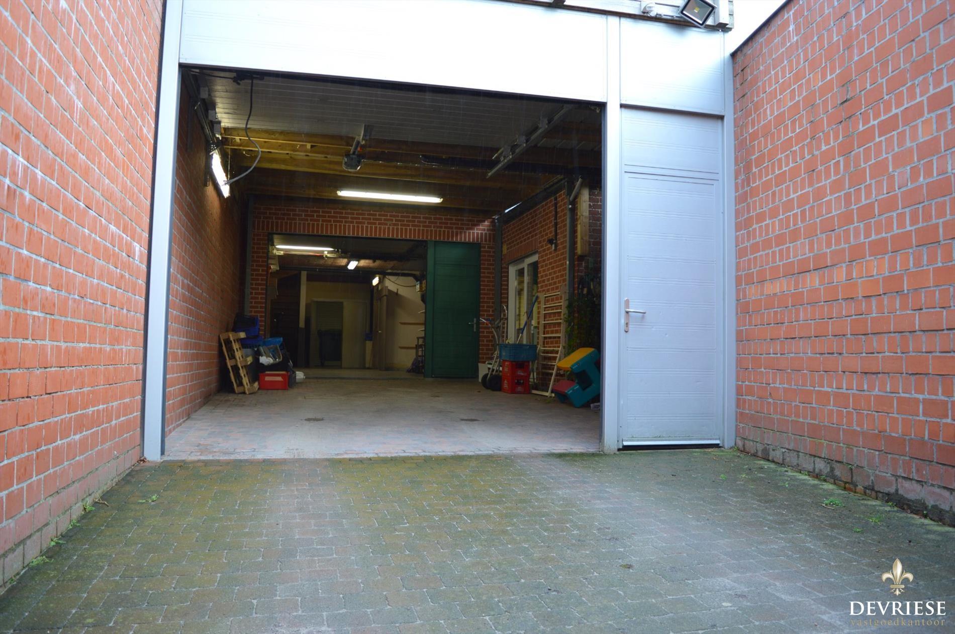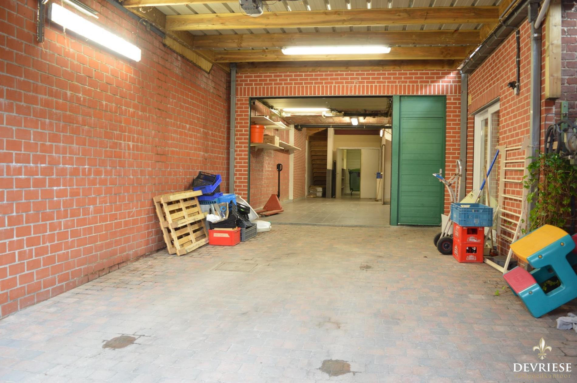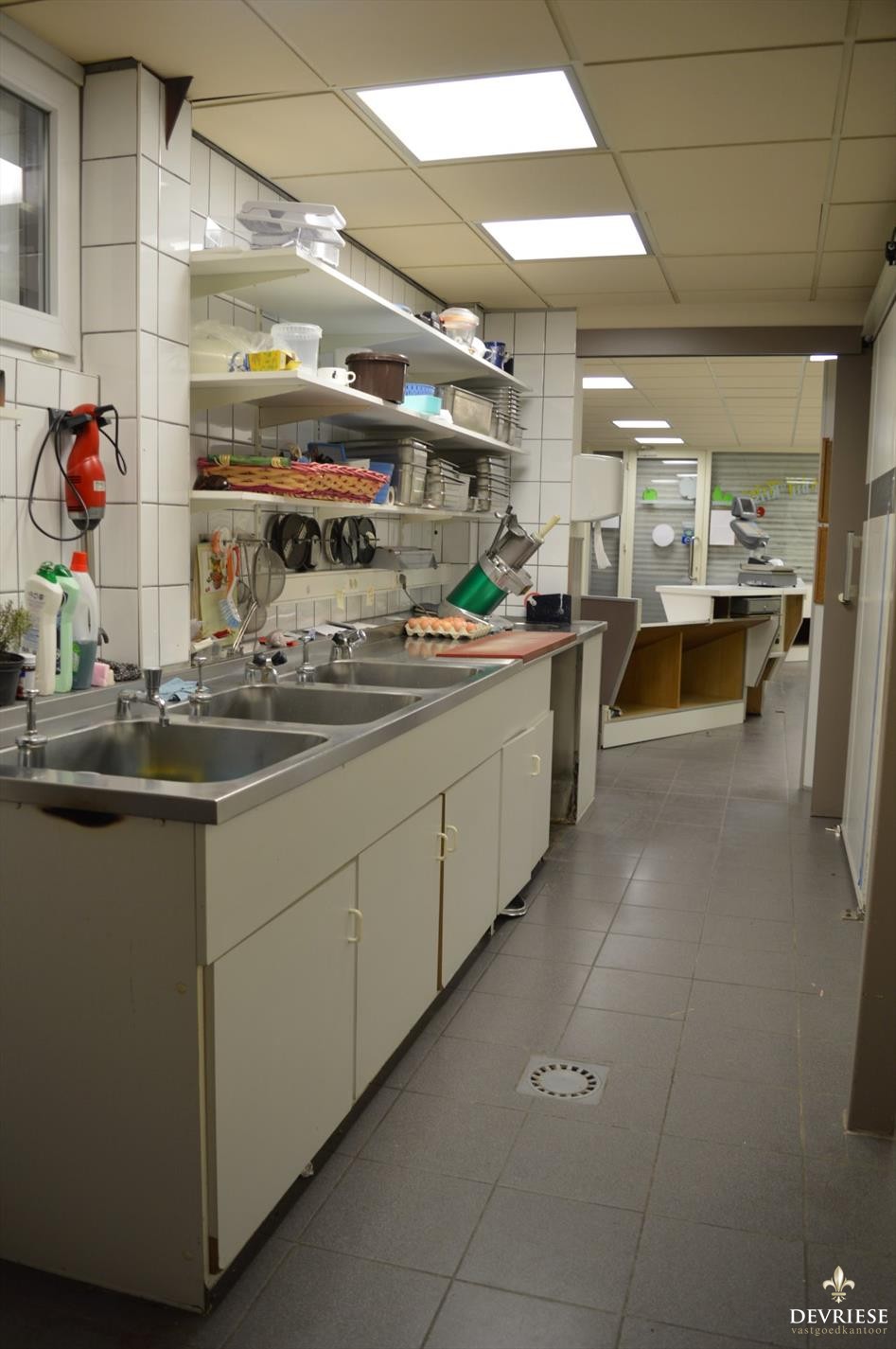 Het verhuurde gelijkvloers bestaat uit de commerciële winkelruimte van 50 m². Daarachter een ingerichte keuken met bijhorende praktische koelcel, een bureauruimte met apart toilet. Daarnaast een grote stapelruimte van 46m² die doorgeeft naar de garage/carport met afgelosten met elektrische poort en bereikbaar via de zeer handige uitweg achteraan. Centrale verwarming op aardgas, alu ramen met dubbel glas.