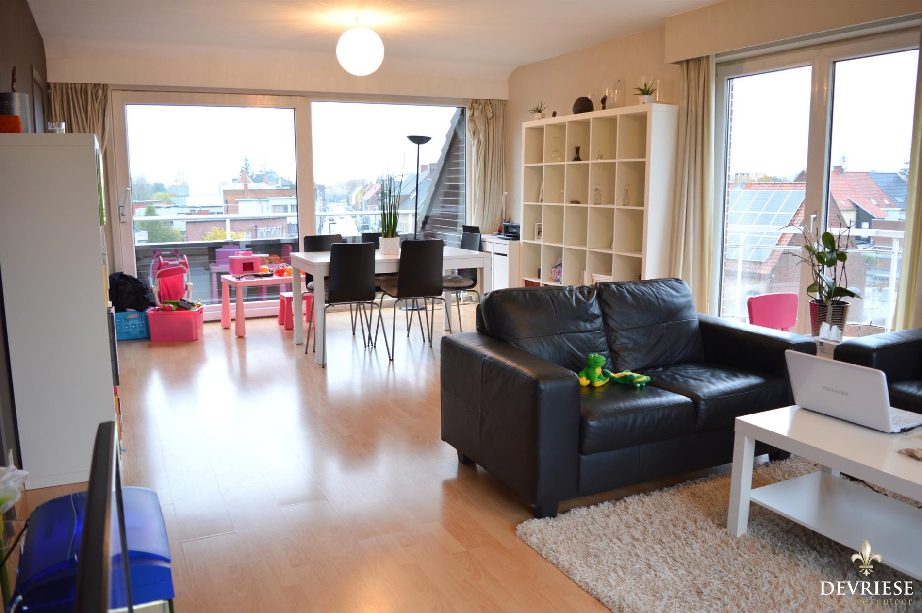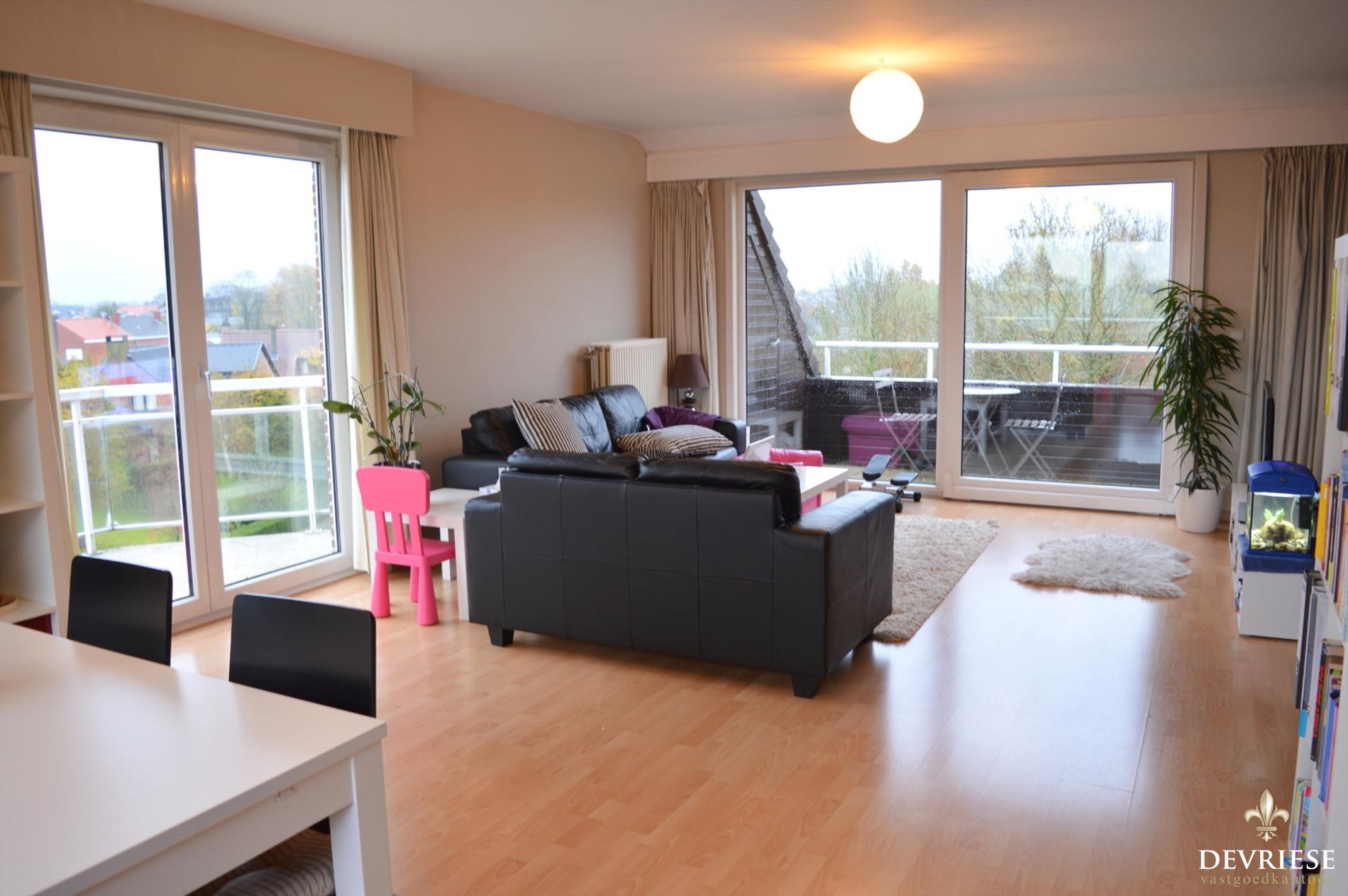 Lichtrijk appartement waar je vanuit de leefruimte een zeer fijn zicht hebt op 'Gullegem plaats'. Verzorgde keuken, 2 slaapkamers en 3 aparte terrassen. Zo geniet je op elk moment van de dag van het zicht en de zon.
