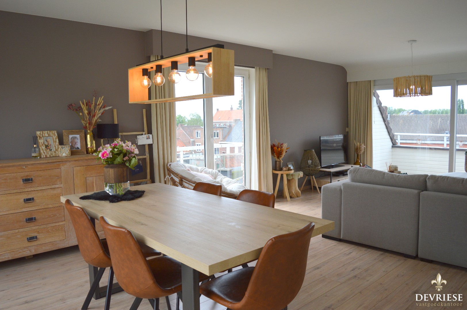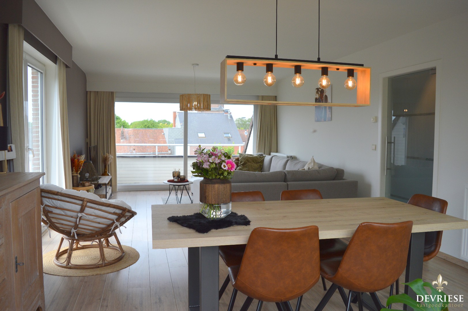 Bij het binnenkomen in de hal voorzien van apart gastentoilet kom je in de enorm lichtrijke leefruimte. Door de vele raampartijen en vrij zicht is er een zeer vrij gevoel, met daarnaast de ingerichte keuken.