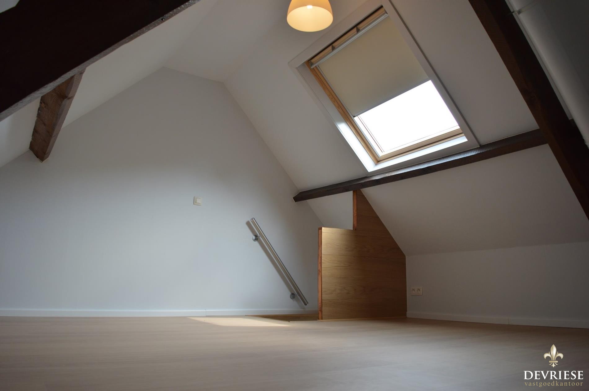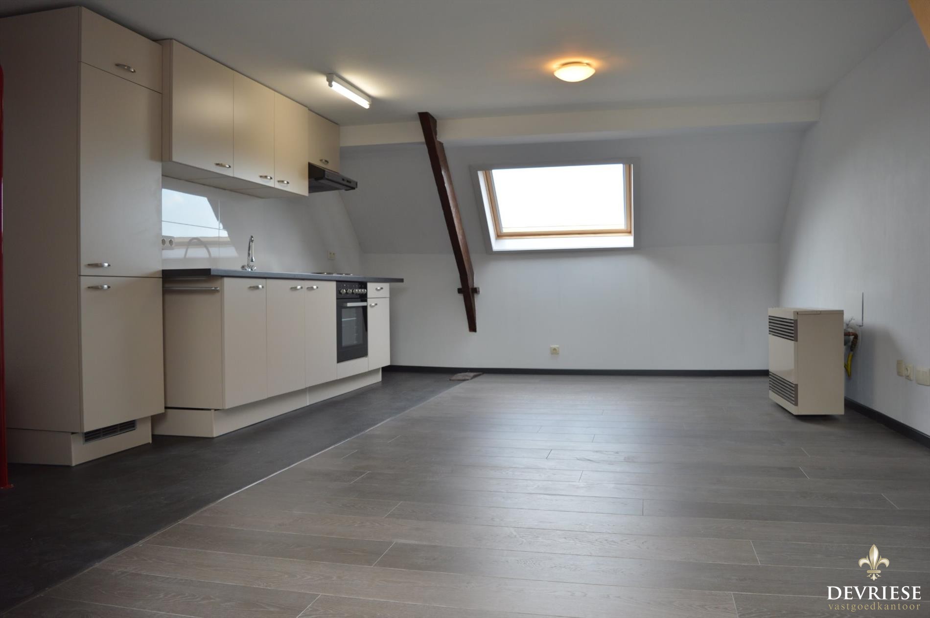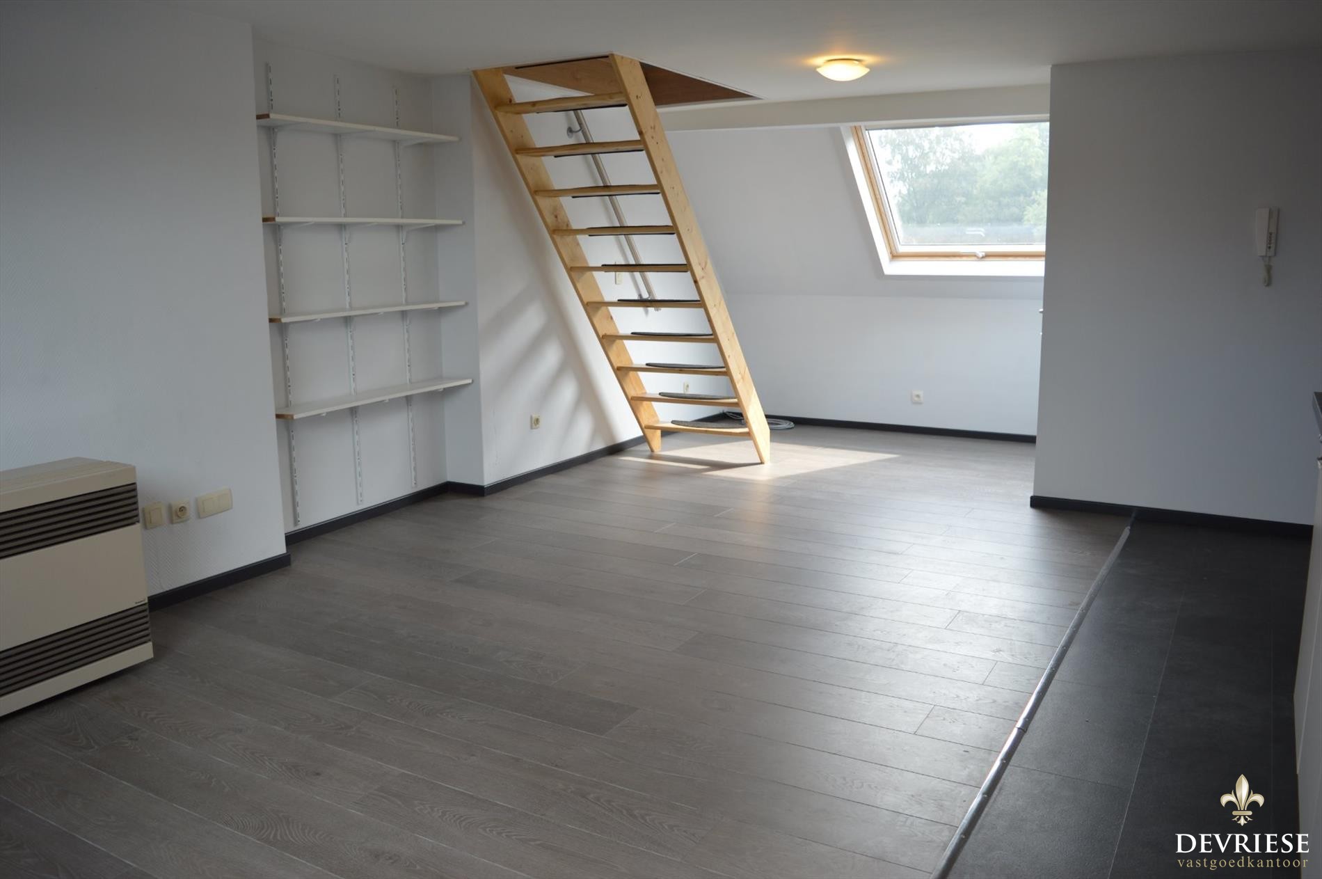 Volledig vernieuwde studio van bijna 60m² op de bovenste verdieping van het gebouw. Moderne keuken, aparte badkamer met douche en toilet. Daarenboven een aparte slaapkamer van 17 m². Dit allemaal op wandelafstand van school, stadspark, winkels en op een minuutje van R8.