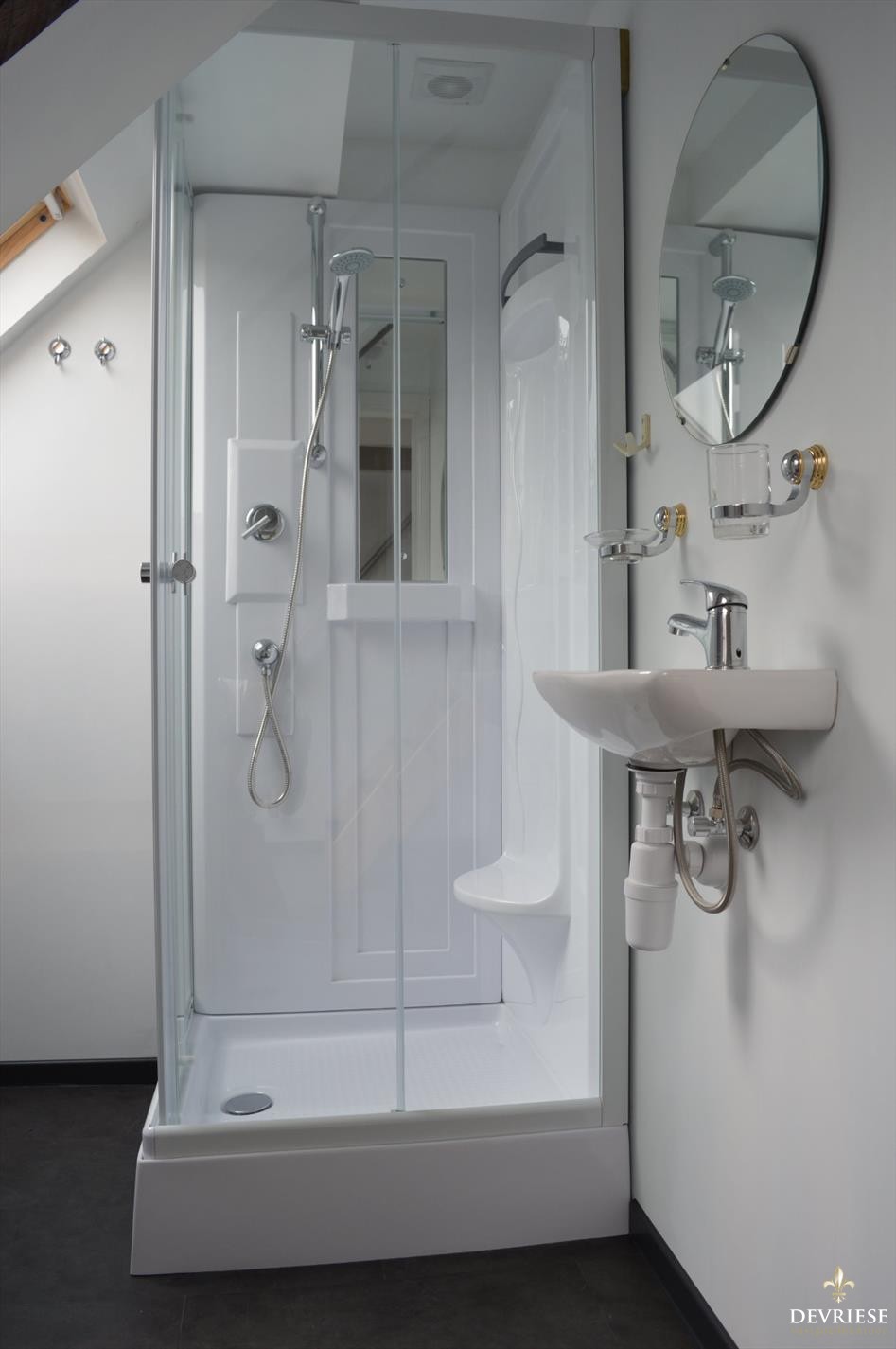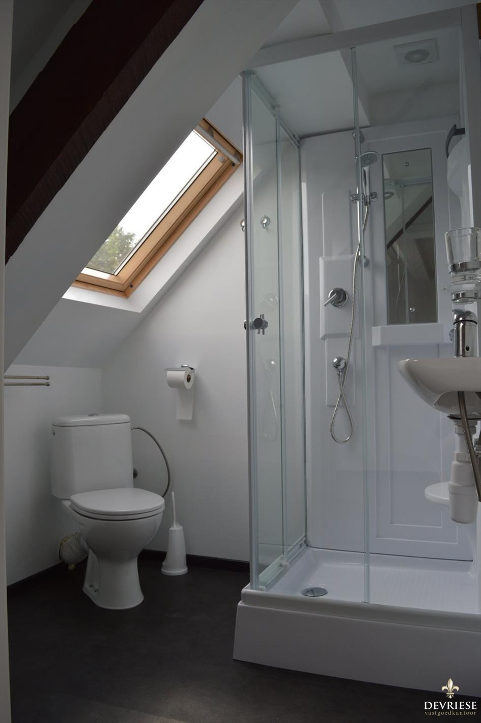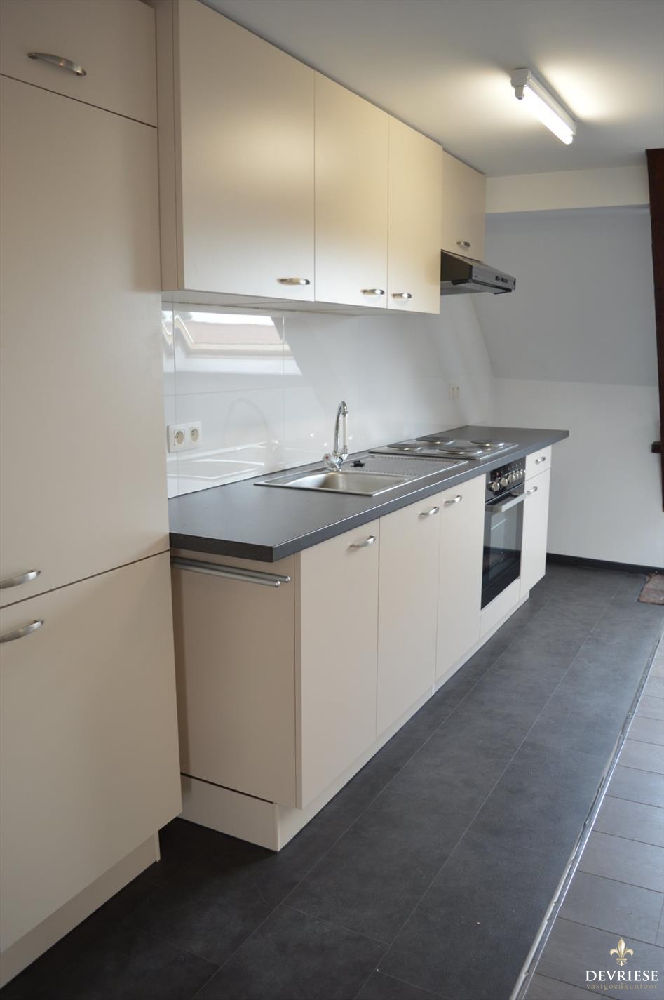 Volledig vernieuwde studio van bijna 60m² op de bovenste verdieping van het gebouw. Moderne keuken, aparte badkamer met douche en toilet. Daarenboven een aparte slaapkamer van 17 m². Dit allemaal op wandelafstand van school, stadspark, winkels en op een minuutje van R8.