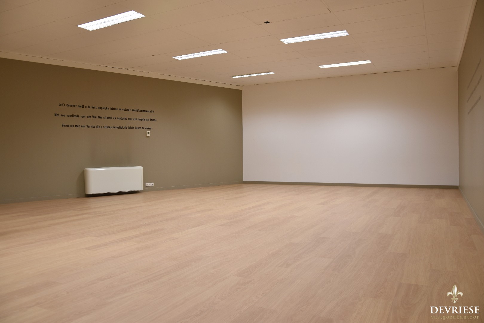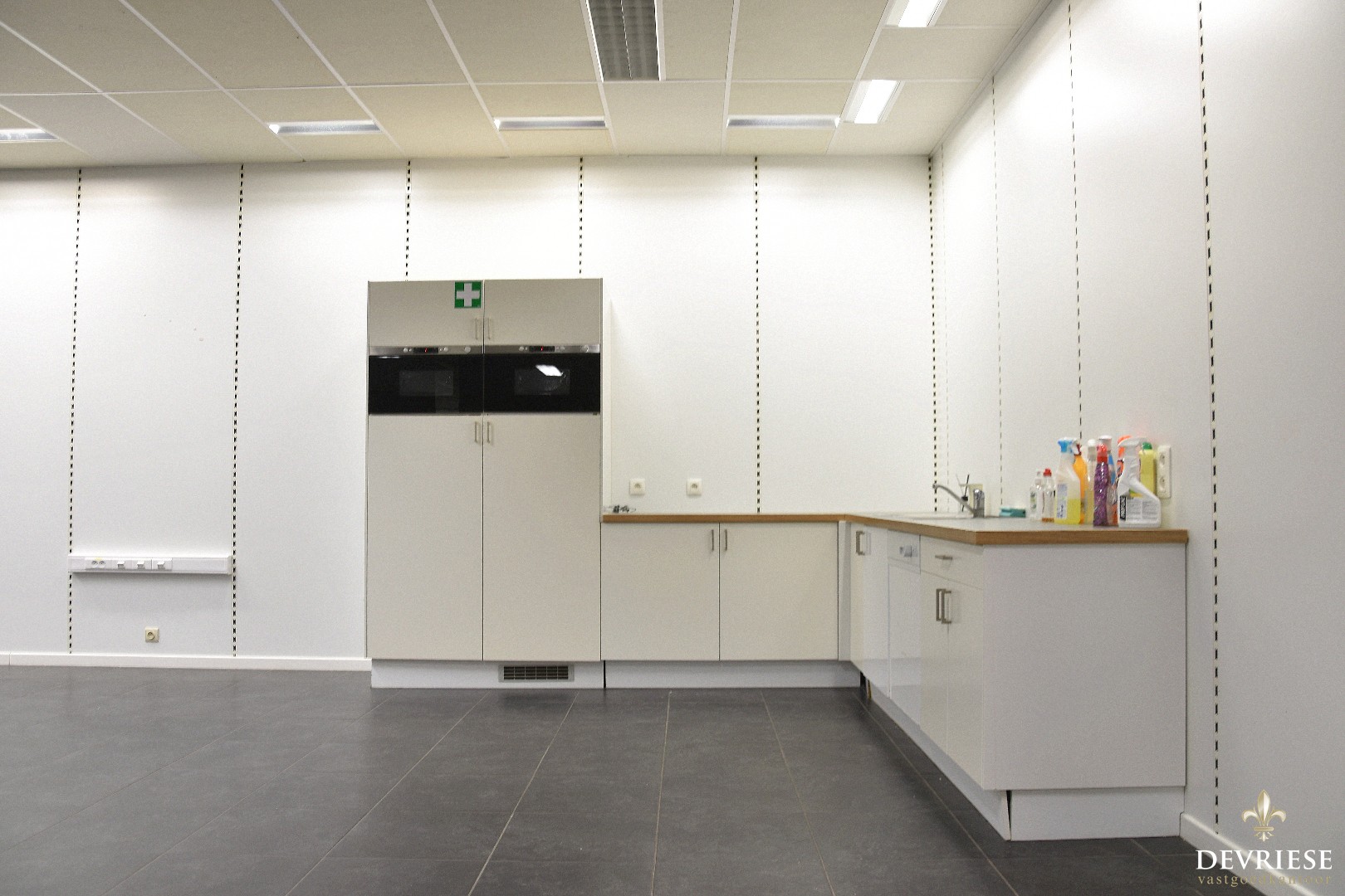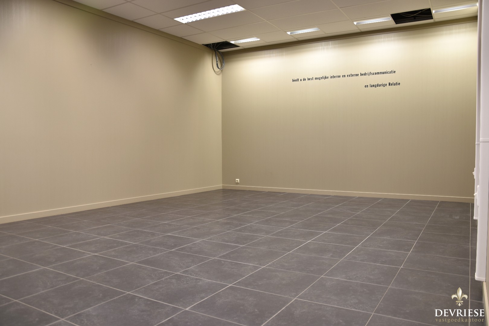 Op vandaag is het pand opgedeeld in verschillende bureau- of werkruimtes maar vooral doormiddel van houten wanden. De indeling is m.a.w. zeer vlot te wijzigen. Ook in aanwezigheid van keuken en sanitair.