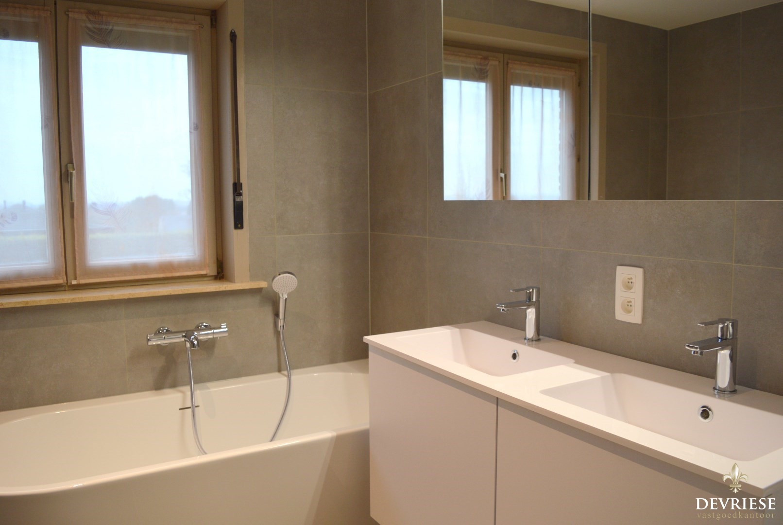 Op het verdiep zijn er 3 ruime slaapkamers en de vernieuwde badkamer met zowel bad als douche en toilet..