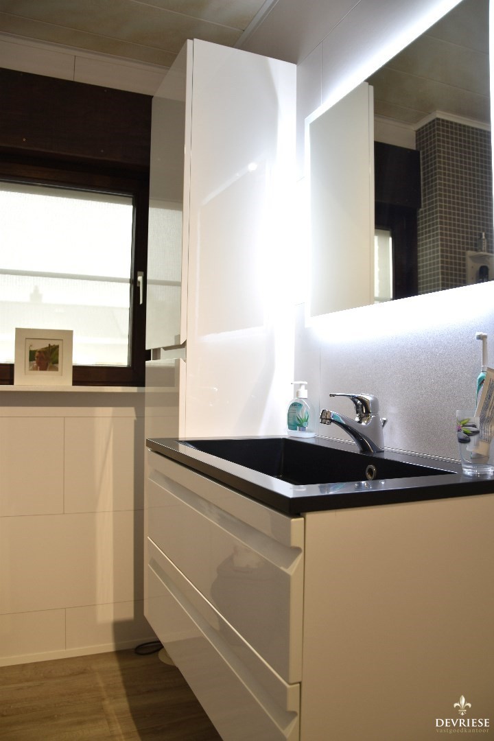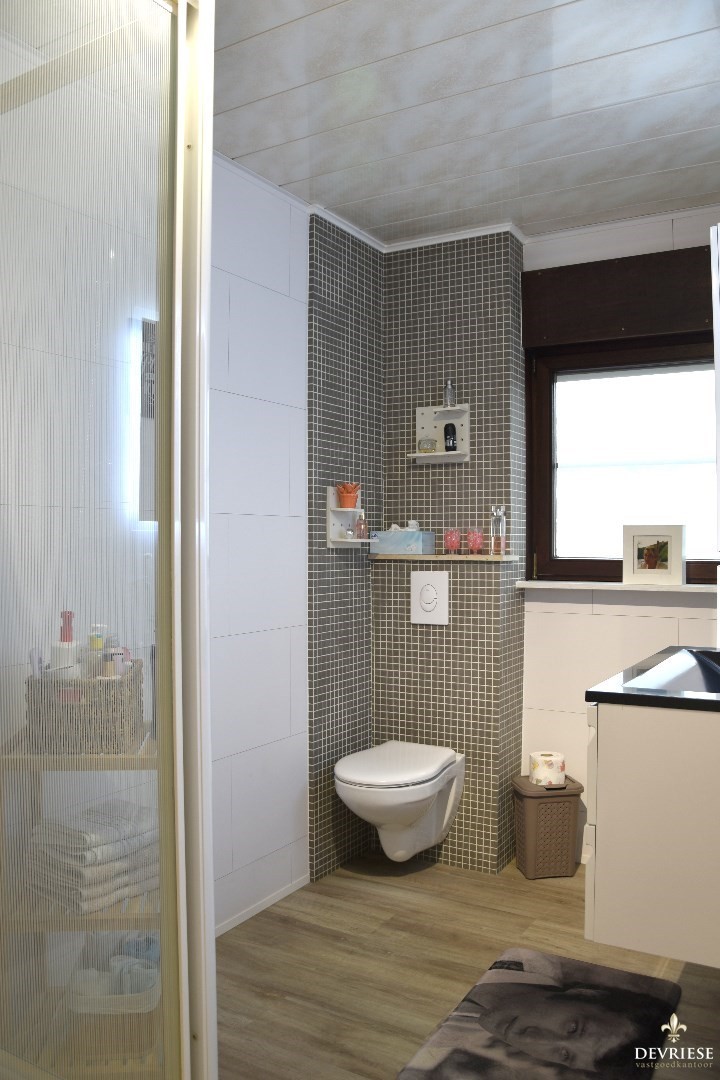 Op de verdieping tellen we 3 volwaardige slaapkamers. De badkamer werd ingericht met een lavabomeubel, douche en tweede toilet.