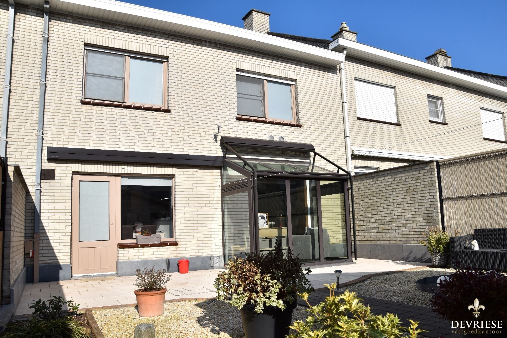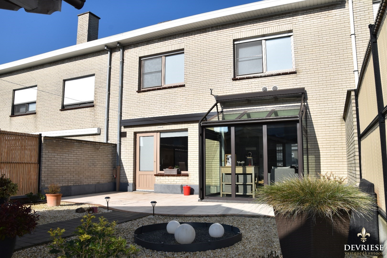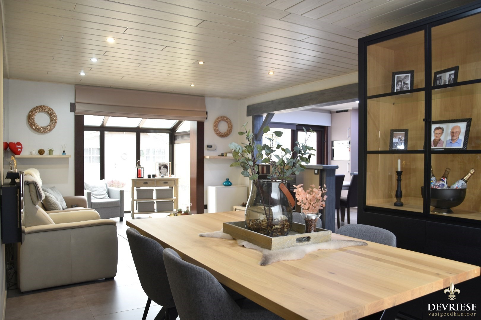 Er is heel wat connectie met de tuin, dankzij de vele glaspartijen en de aangebouwde veranda.