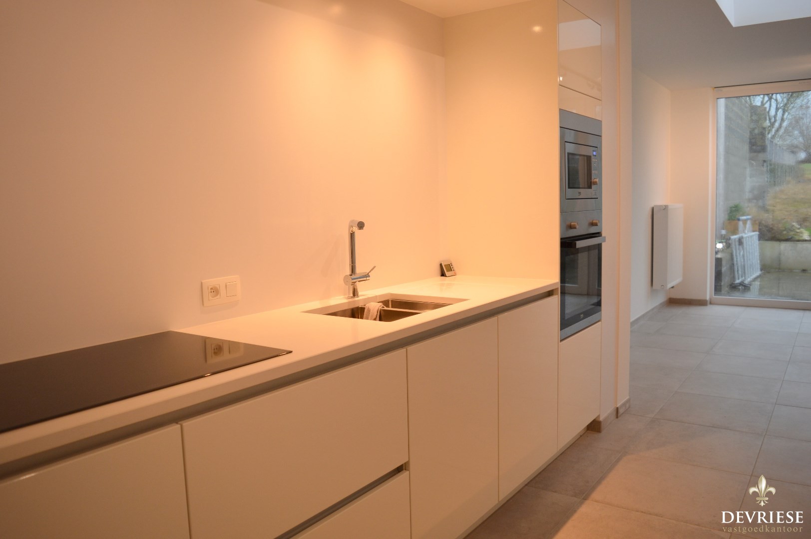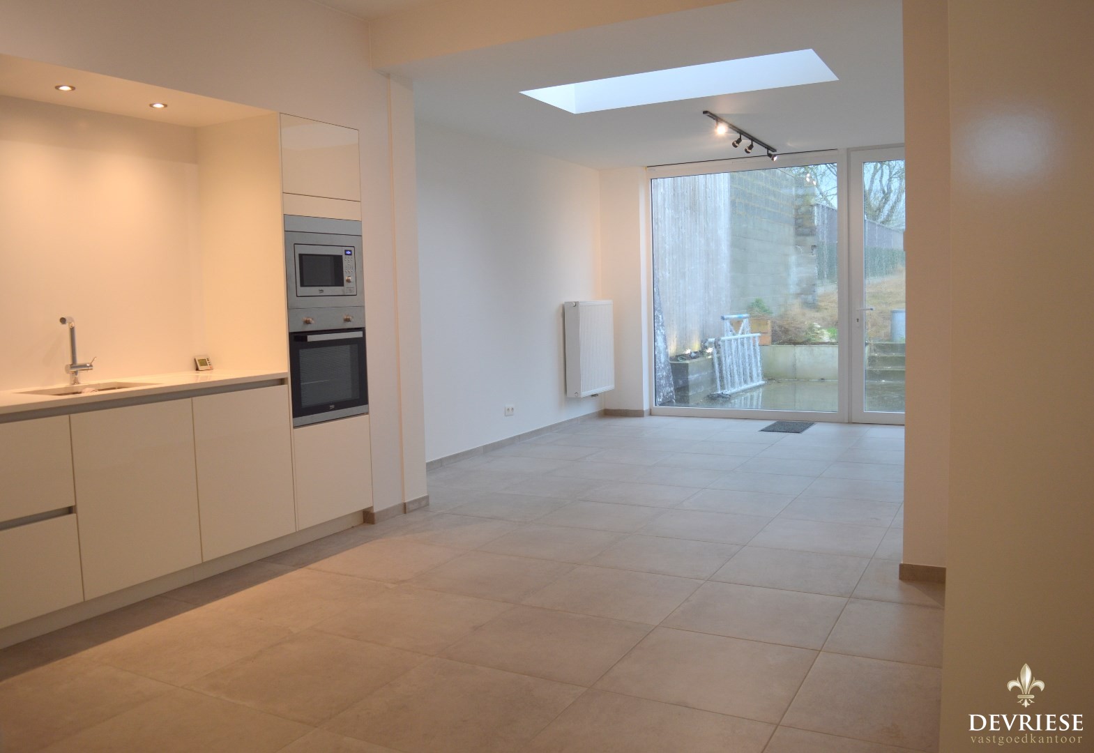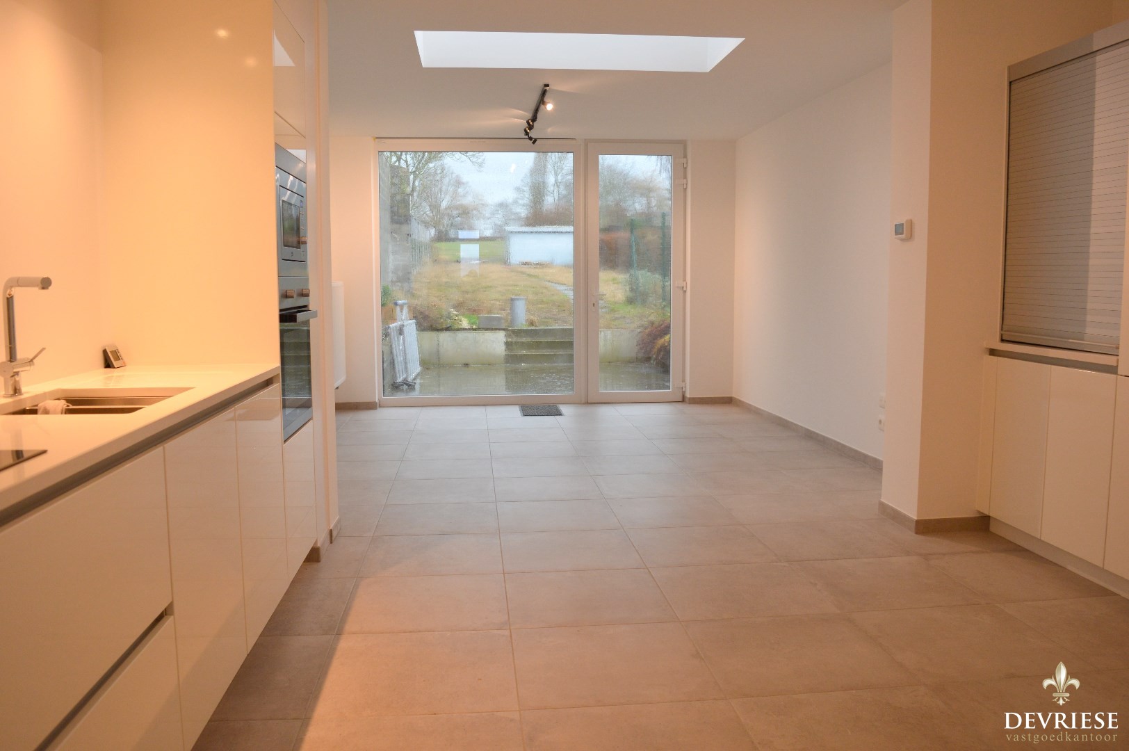 Inkomhal met apart gastentoilet, ruime vernieuwde keuken met aansluitend de lichtrijke living met toegang tot de aangename tuin. (de tuin wordt nog ingezaaid in het voorjaar).