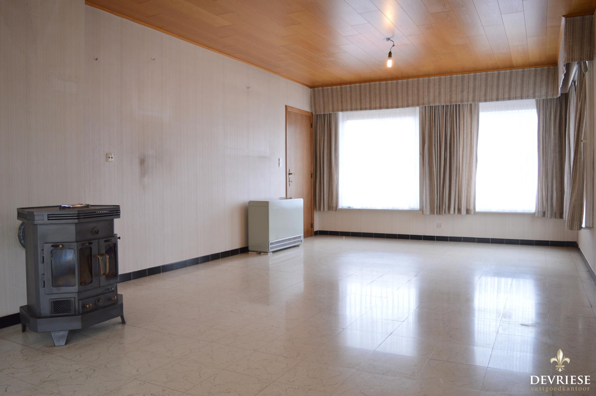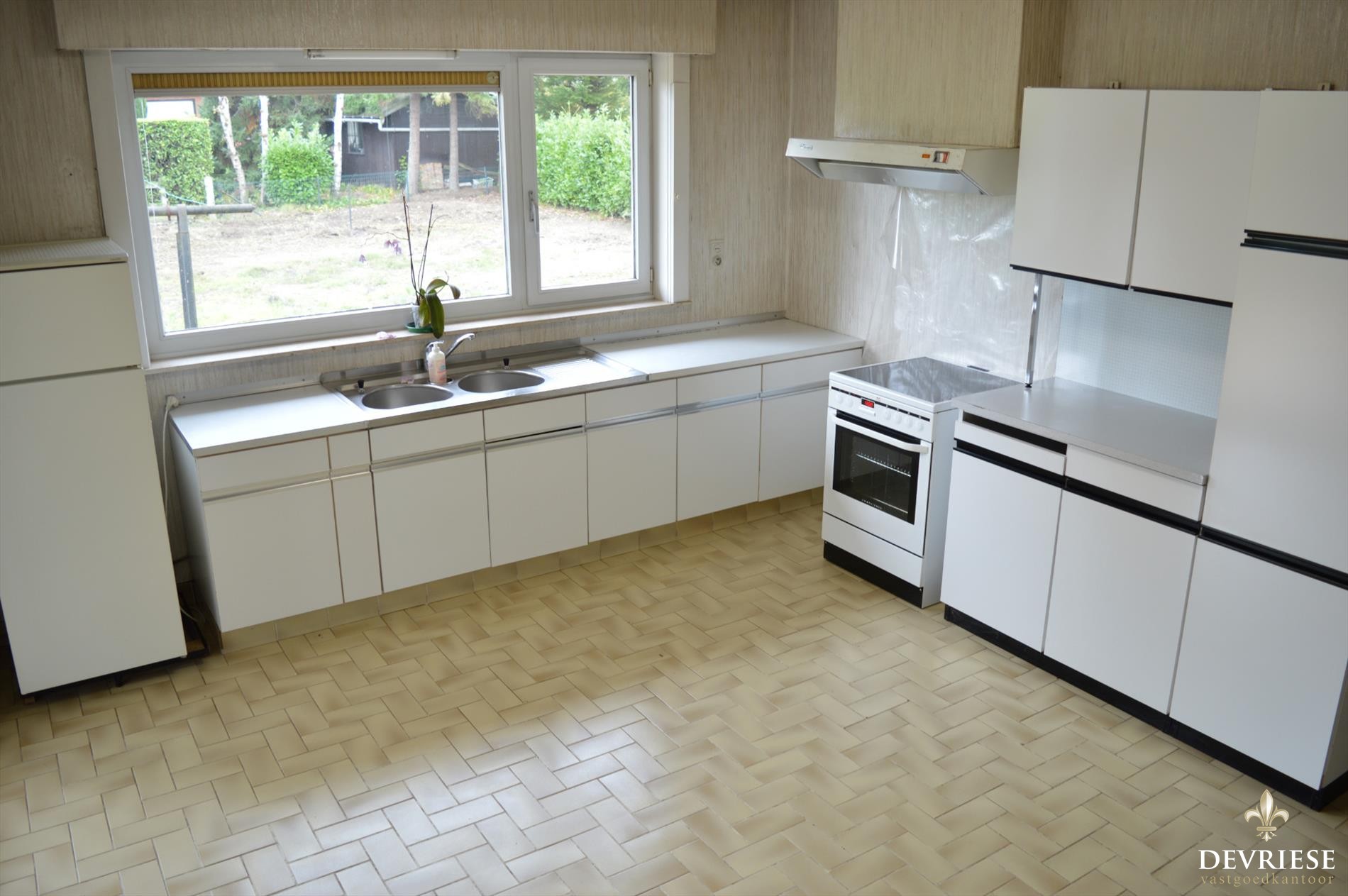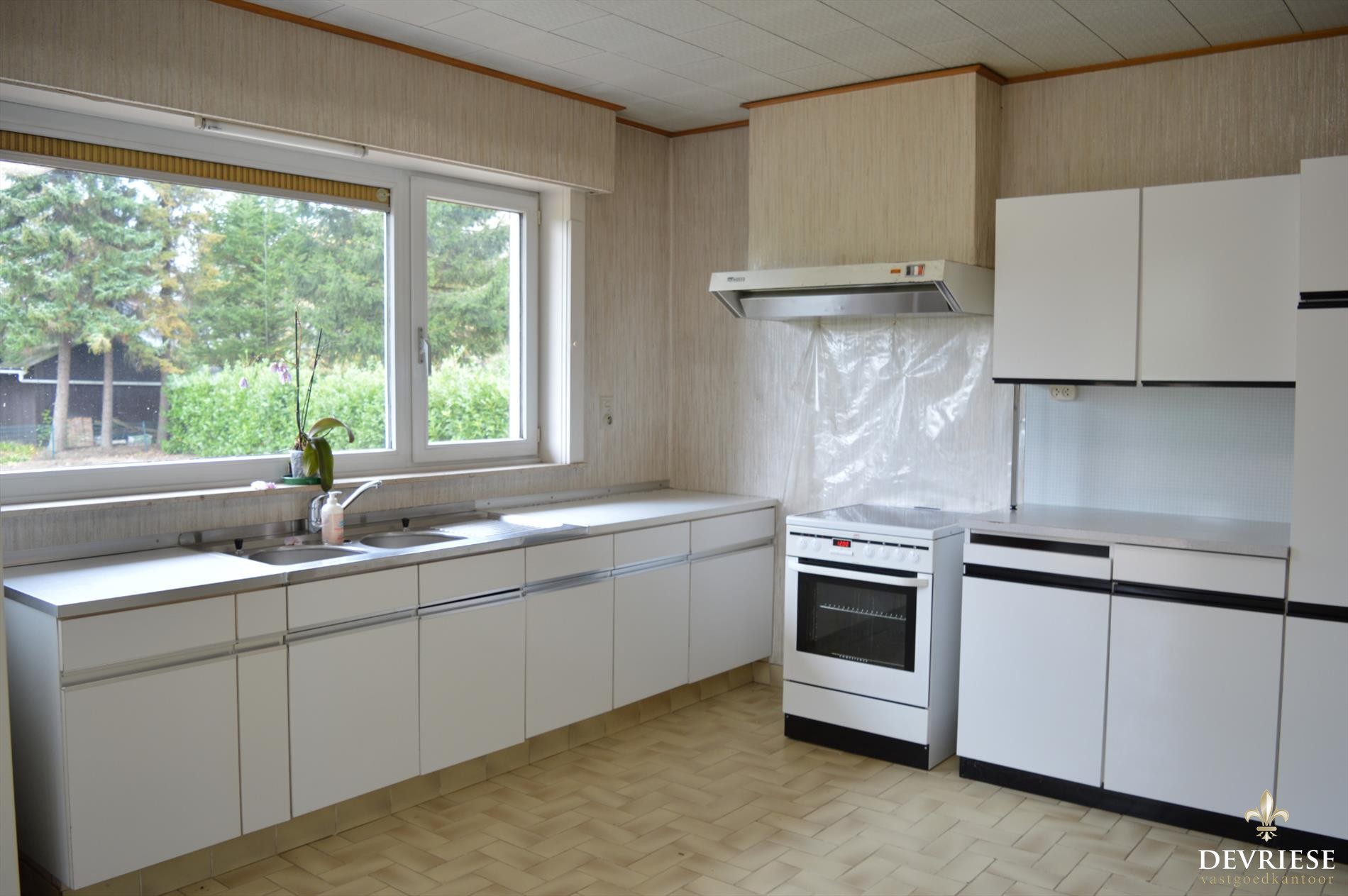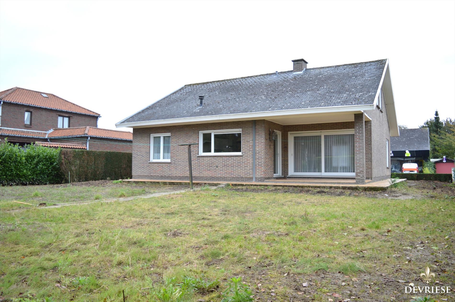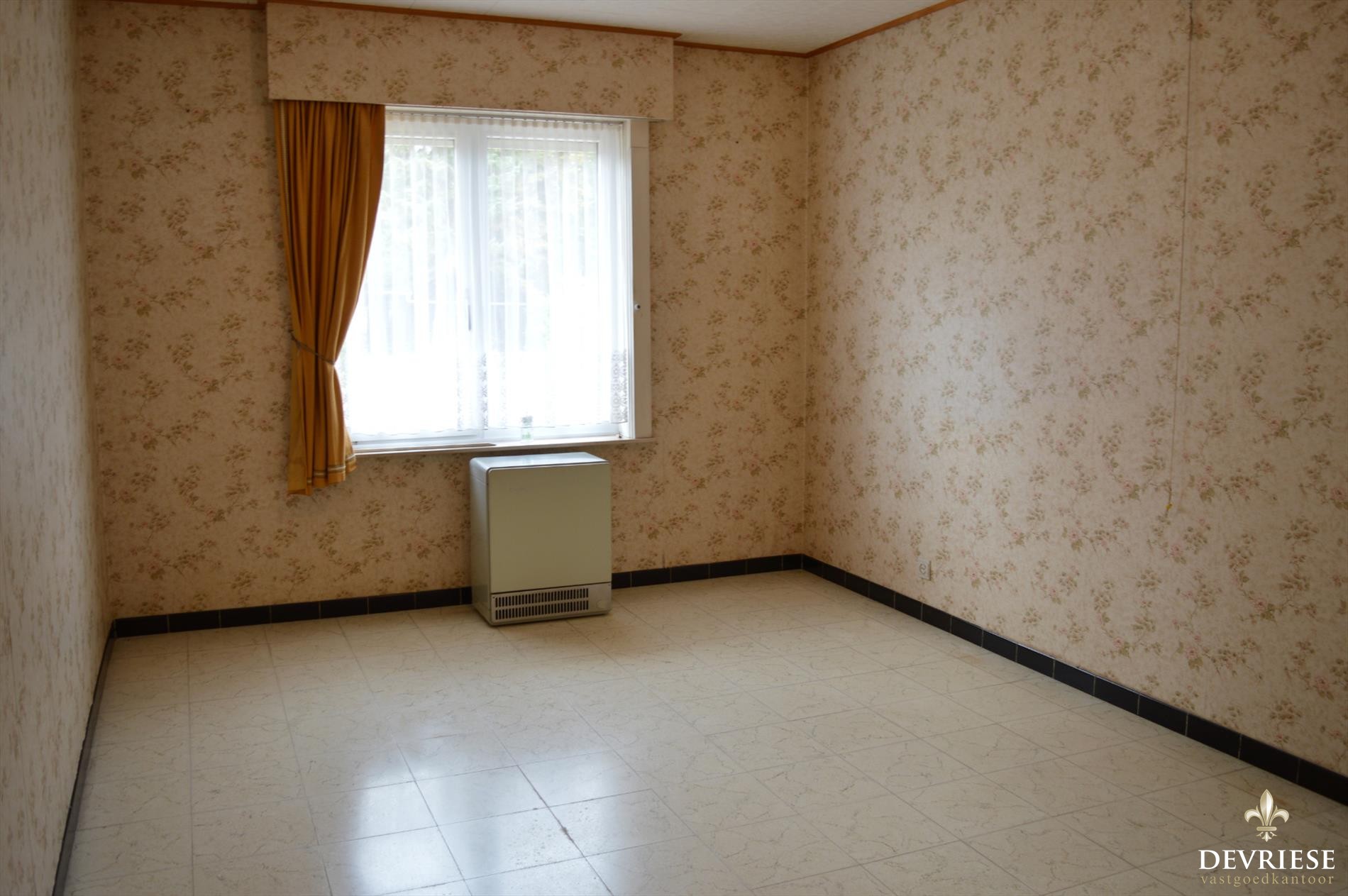 De woning beschikt over een living en keuken die uitkijken op de grote tuin. Verder vinden we op de gelijkvloerse verdieping een grote slaapkamer, een badkamer met toilet, een gastentoilet, berging en een ruime garage.