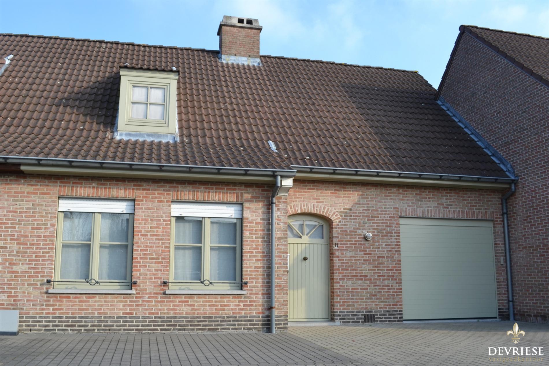Tussen de garage en de living bevindt zich een praktische keuken met veel kastruimte. Als extra troef is er de garage met elektrische poort en deze geeft rechtstreeks toegang tot de tuin.