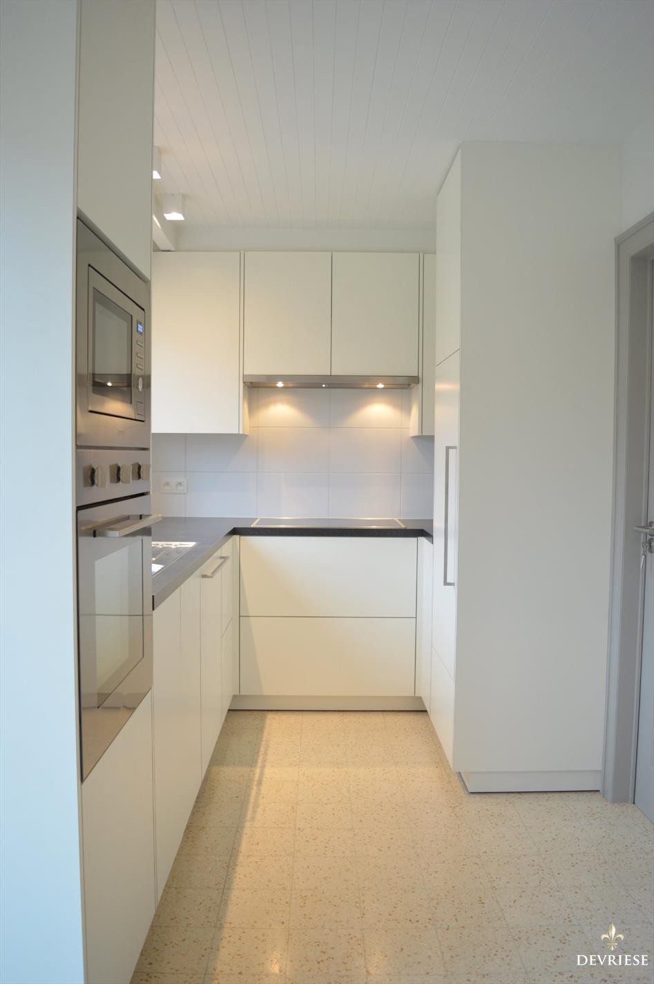 Aparte inkomhal met gastentoilet, ruime en lichtrijke leefruimte met aanliggend de vernieuwde en volledig ingerichte keuken. Vanuit zowel living als keuken is er vol zicht op de achtertuin met gunstige zuidoriëntatie. Daarnaast op het gelijkvloers de garage met bijhorende berging.