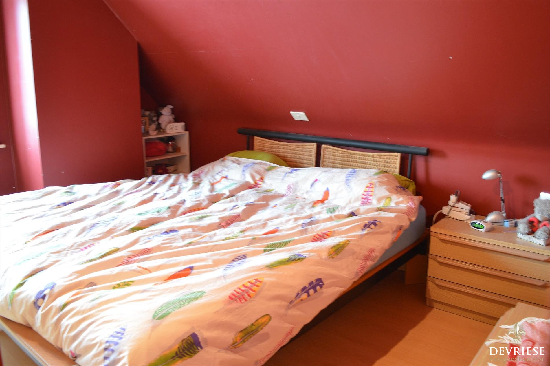 Een aparte inkomhal met gastentoilet, ruime leefruimte met open ingerichte leefkeuken en de garage met extra bergruimte. Op het eerste verdiep zijn er 4 slaapkamers voorzien en de badkamer met bad, douche en toilet. De zolder doet dienst als extra bergruimte.