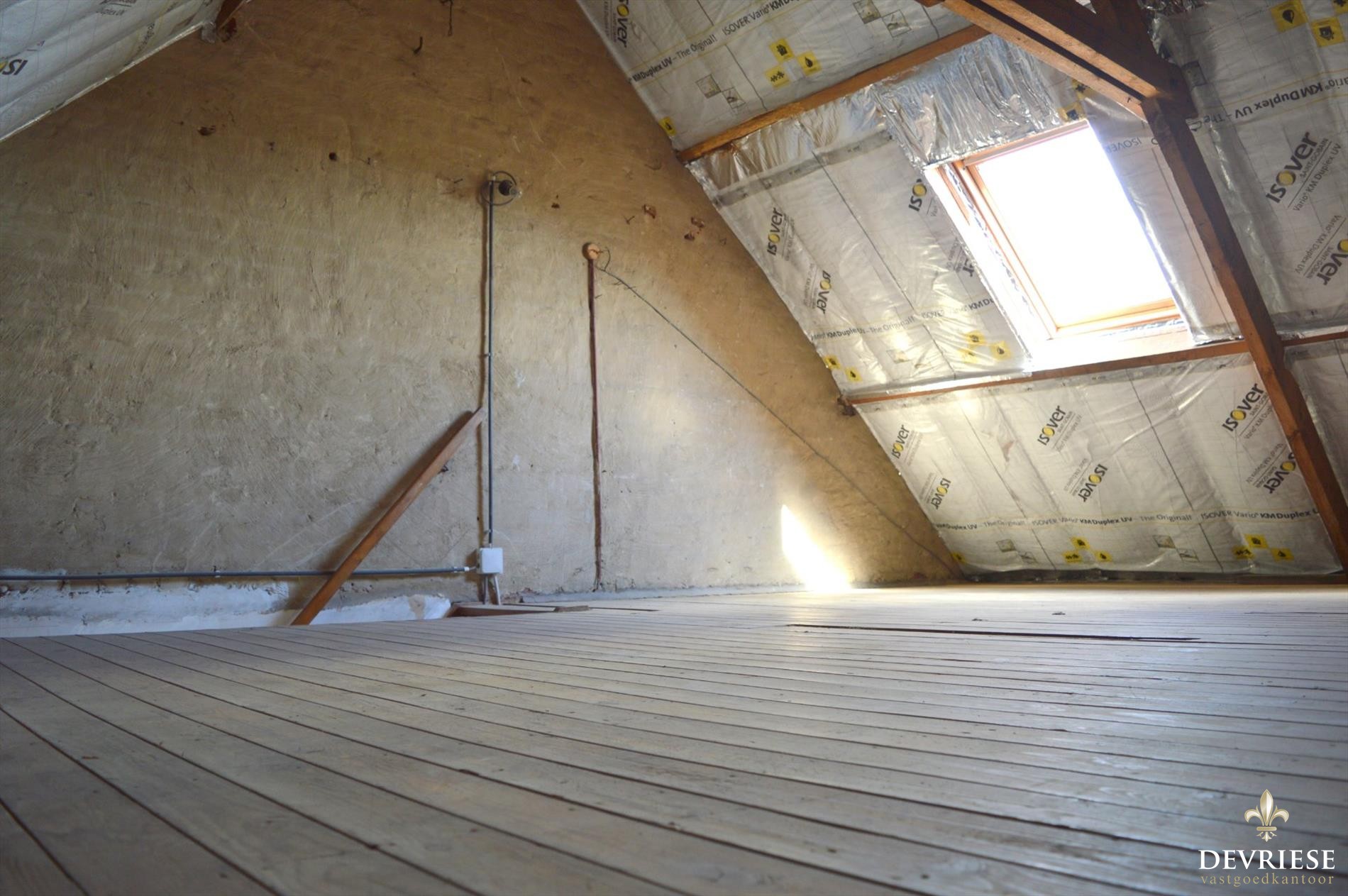 Aparte inkomhal, leefruimte met open ingerichte nieuwe keuken met zicht op de tuin. Op het gelijkvloers ook nog de badkamer. Op de eerste verdieping zijn er 2 slaapkamers. De zolder op het tweede verdiep is bereikbaar via de vaste trap en werd reeds volledig geïsoleerd alsook voorzien van velux raam.