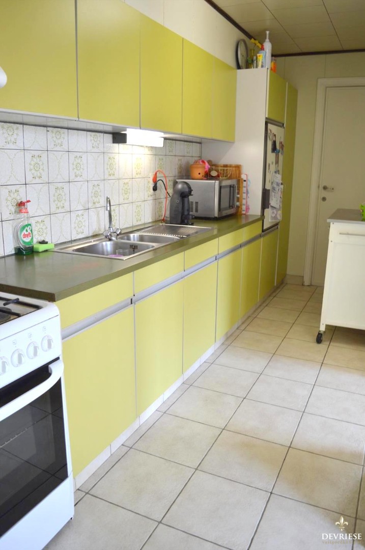 Op het gelijkvloers bevindt zich de inkomhal met aanliggend de praktische kelder. Vanuit de leefruimte is er volop zicht op de veranda en achtertuin, het ideale speelterrein voor kinderen. Naast de leefruimte is er de keuken, met daarachter nog een handige was/bergruimte, badkamer en toilet. Tevens beschikt deze woning over een eigen garage.