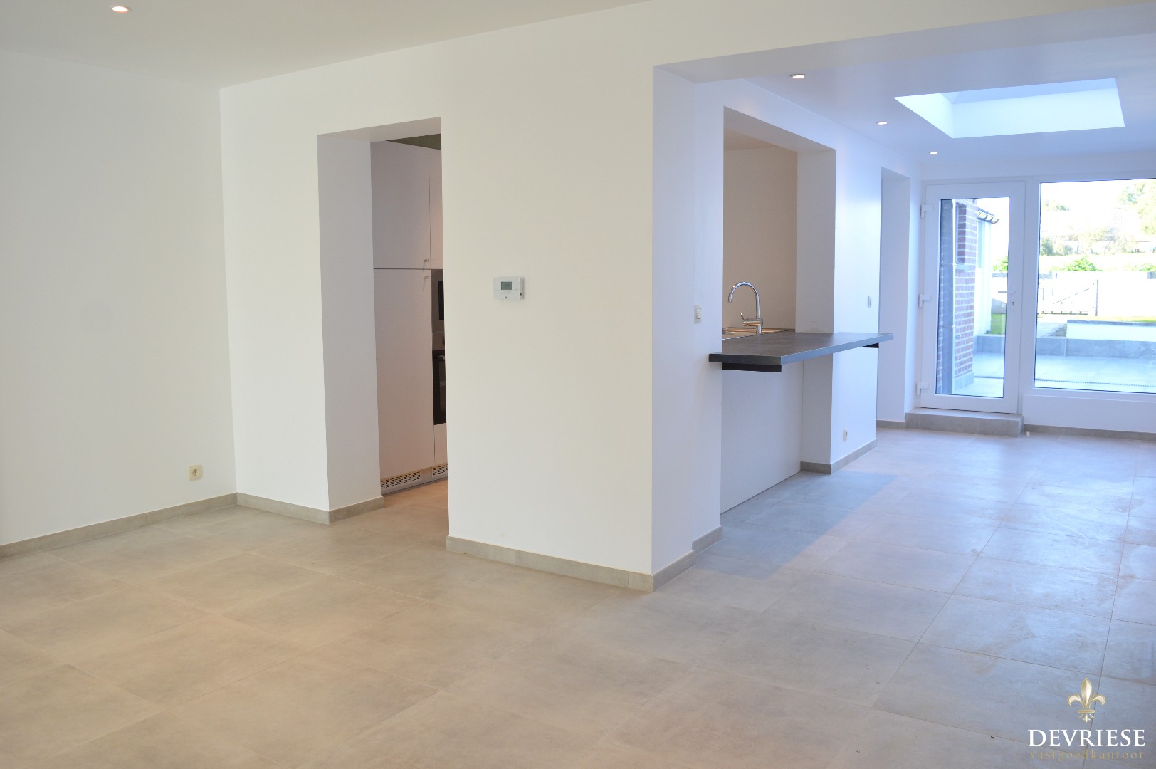 Inkomhal, leefruimte met veel lichtinval, aansluitend de open keuken met alle nieuwe moderne toestellen zoals inductie kookplaat, oven, microgolf en vaatwasmachine met aansluitend de berging met aansluiting voor de wasmachine. Verder is er een apart toilet en toegang tot de tuin met het landelijke zicht en achteraan een padje die uitgeeft naar de straat, ideaal voor het wegzetten van fietsen en bij het onderhoud van de tuin.