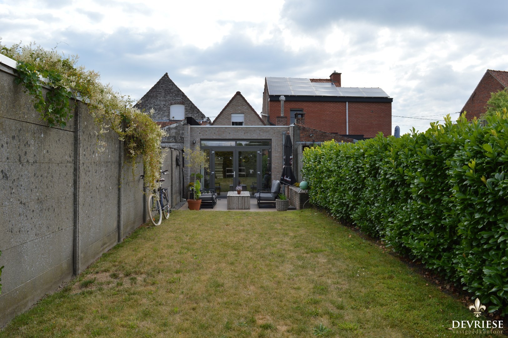 Via de leefruimte is er toegang tot de aangename en onderhoudsvriendelijke tuin.