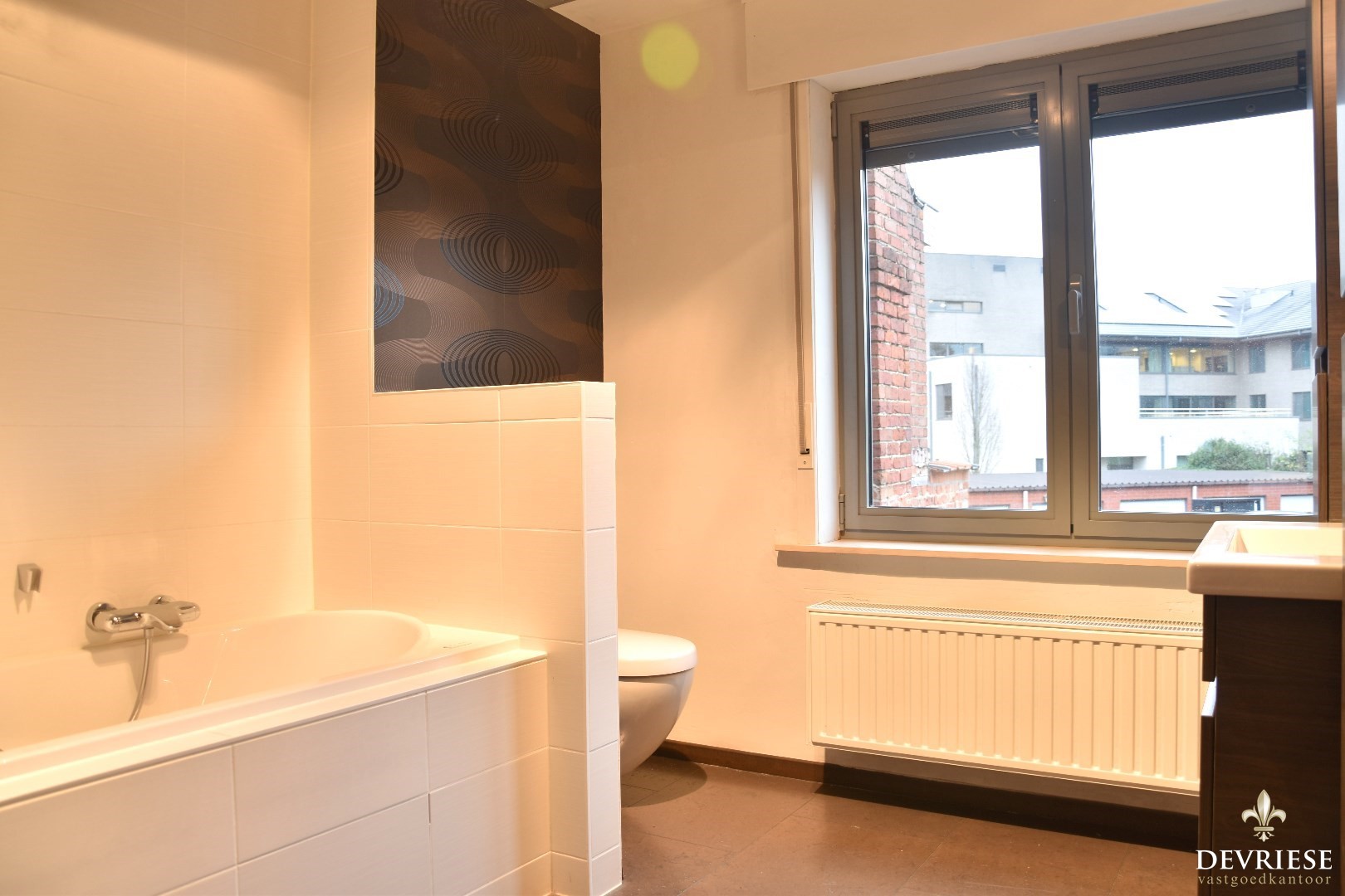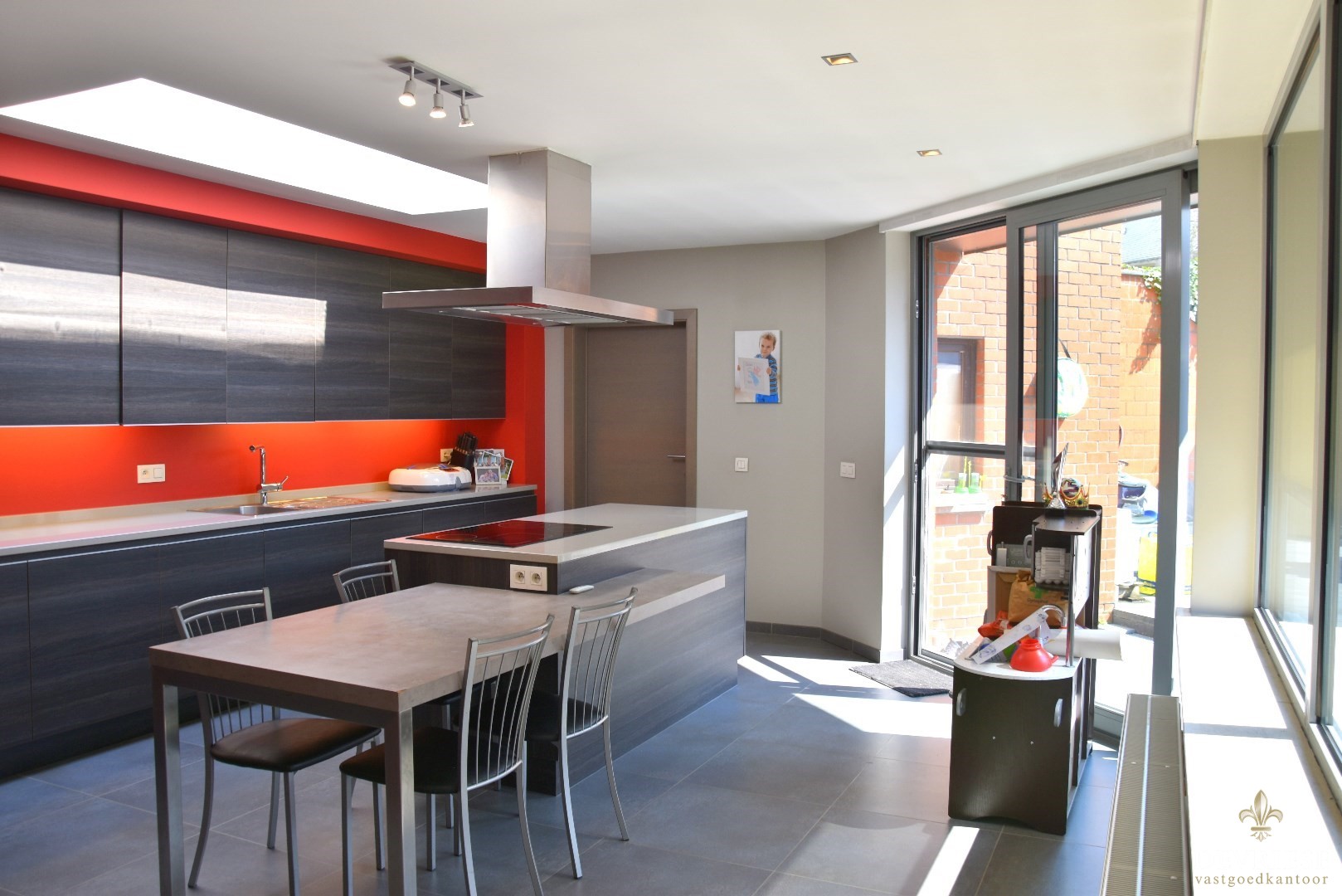 Achteraan geniet u in het gunstig georiënteerde tuintje die toegankelijk is vanuit de keuken of de garage. De garage biedt plaats voor één auto en is voorzien van elektrische poort.