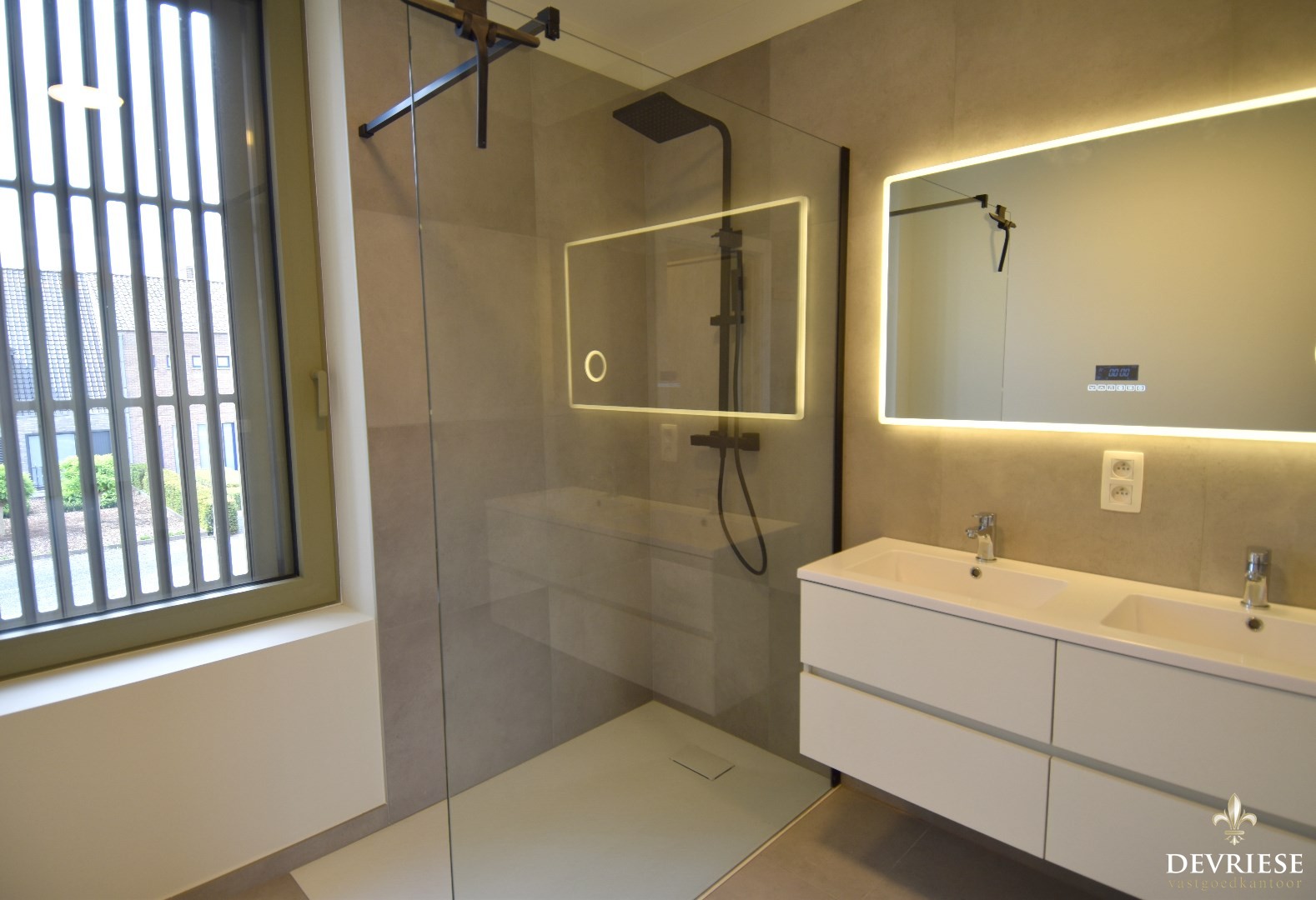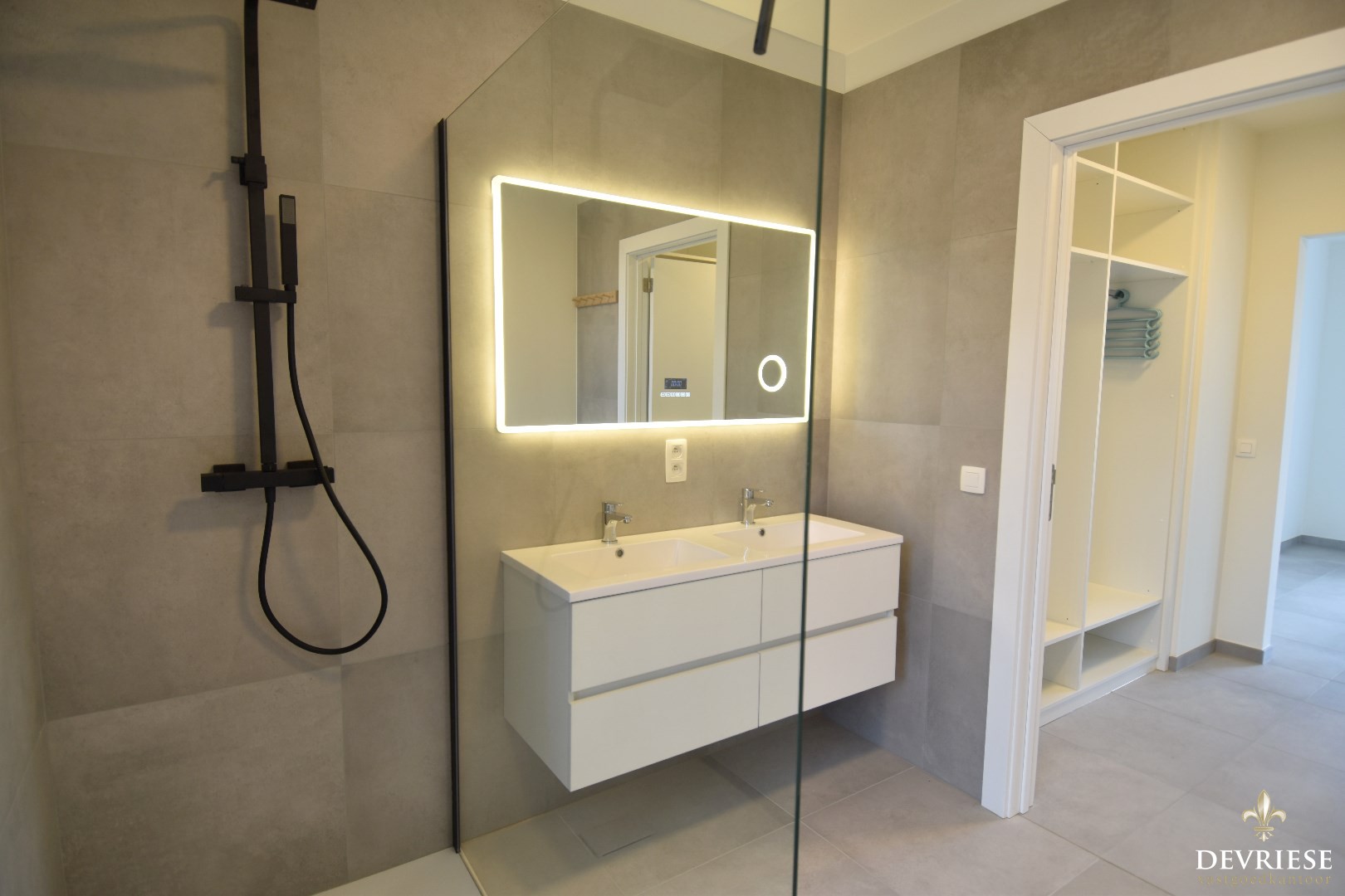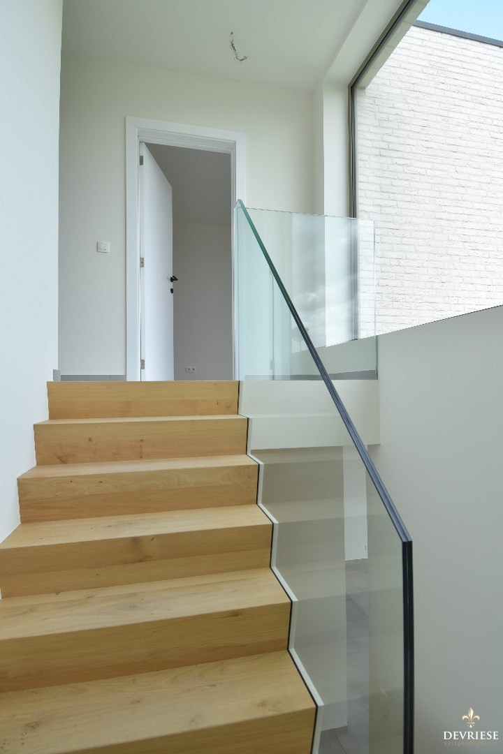Via de lichtrijke trap komen we op de eerste verdieping. Daar zijn er 3 slaapkamers, waarvan 1 slaapkamer beschikt over een dressing met ingemaakte kasten en een eigen badkamer voorzien van inloopdouche en dubbele lavabo.
