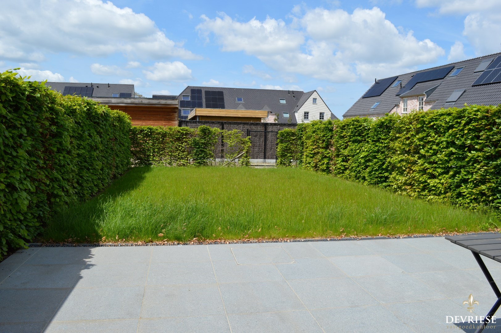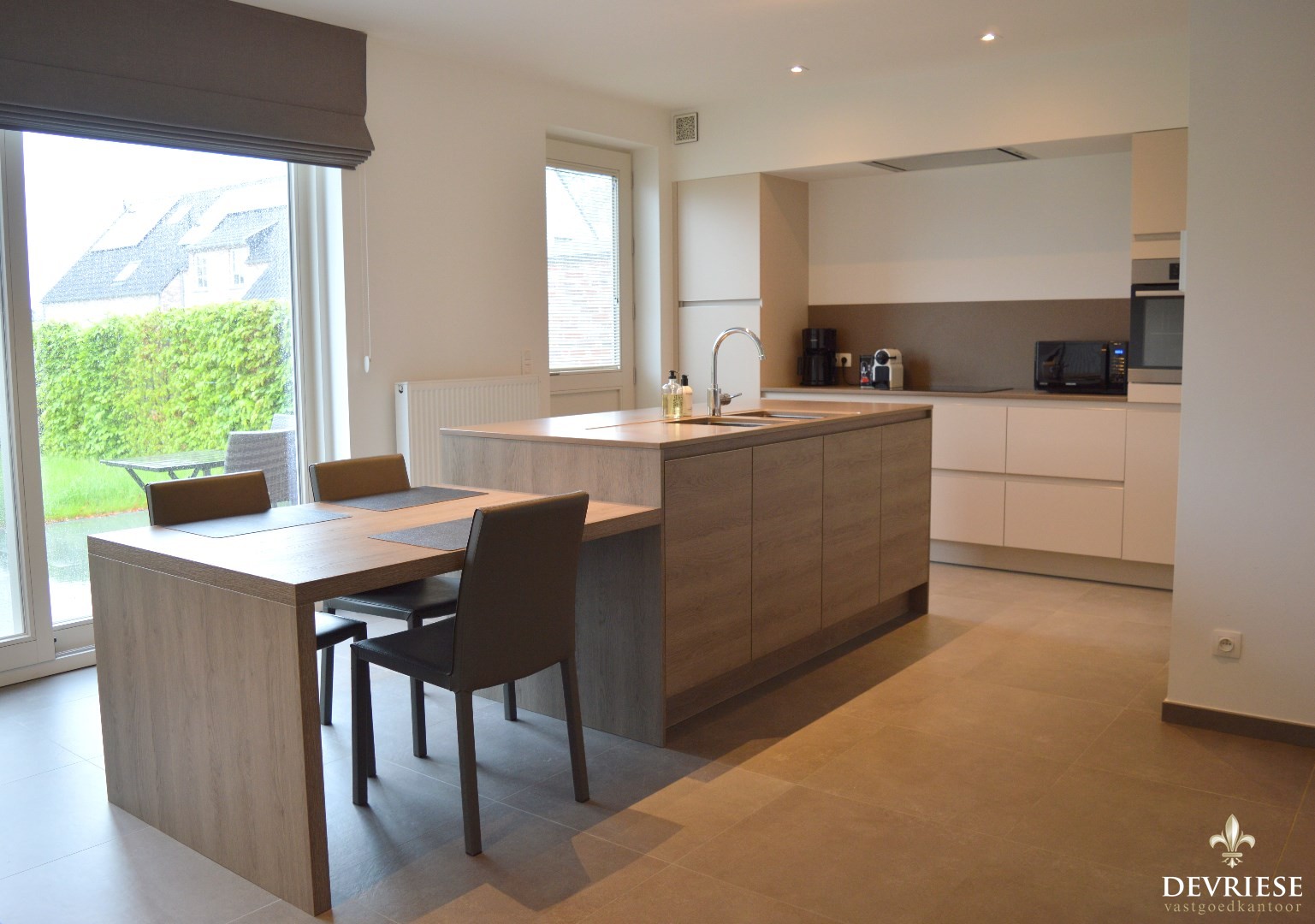 Aansluitend is er de berging met wasmachine, droogkast en vaatwasmachine alsook de toegang tot de aangename tuin.