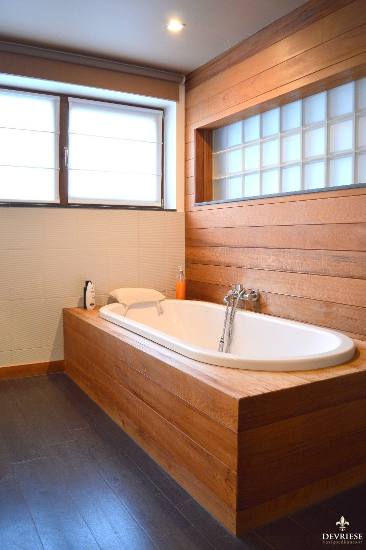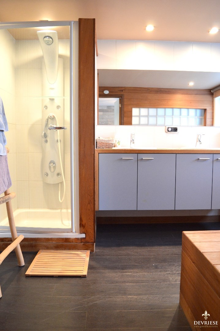 Op de eerste verdieping bevindt zich de ruime bureauruimte/dressing met daarnaast de ruime slaapkamer. Daarnaast de prachtig, rustgevende badkamer met douche en bad, toilet en dubbele lavabo.