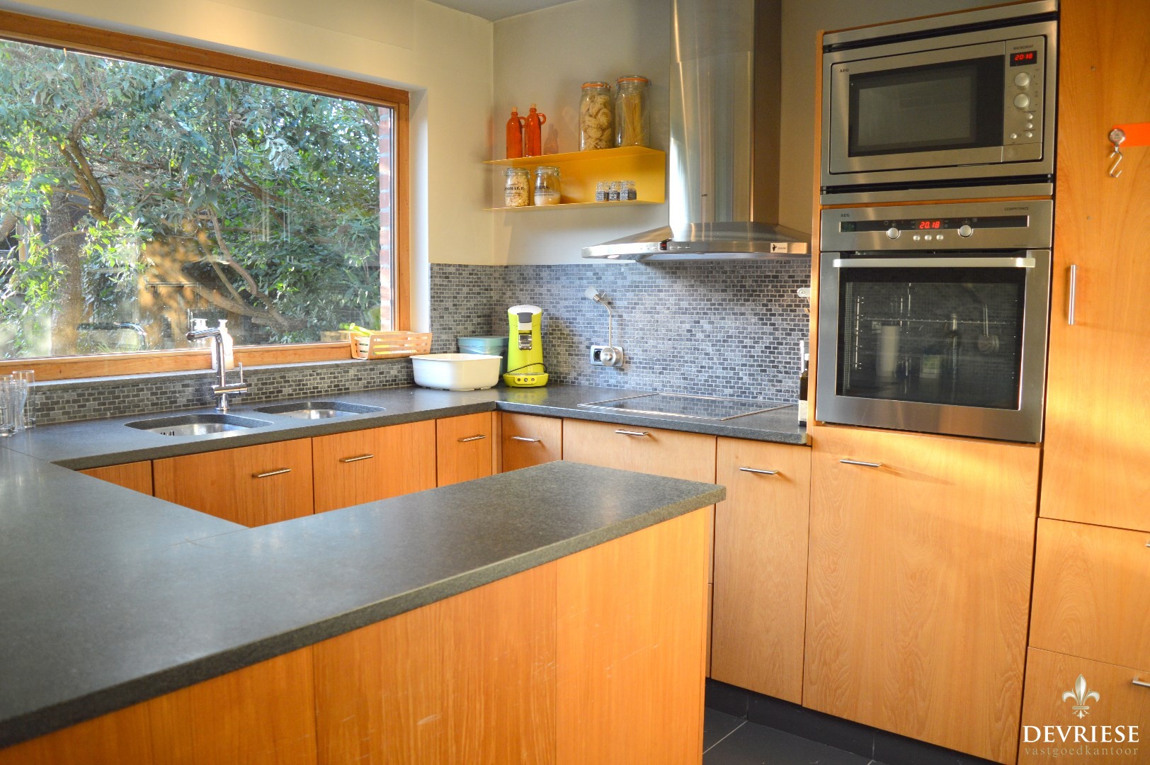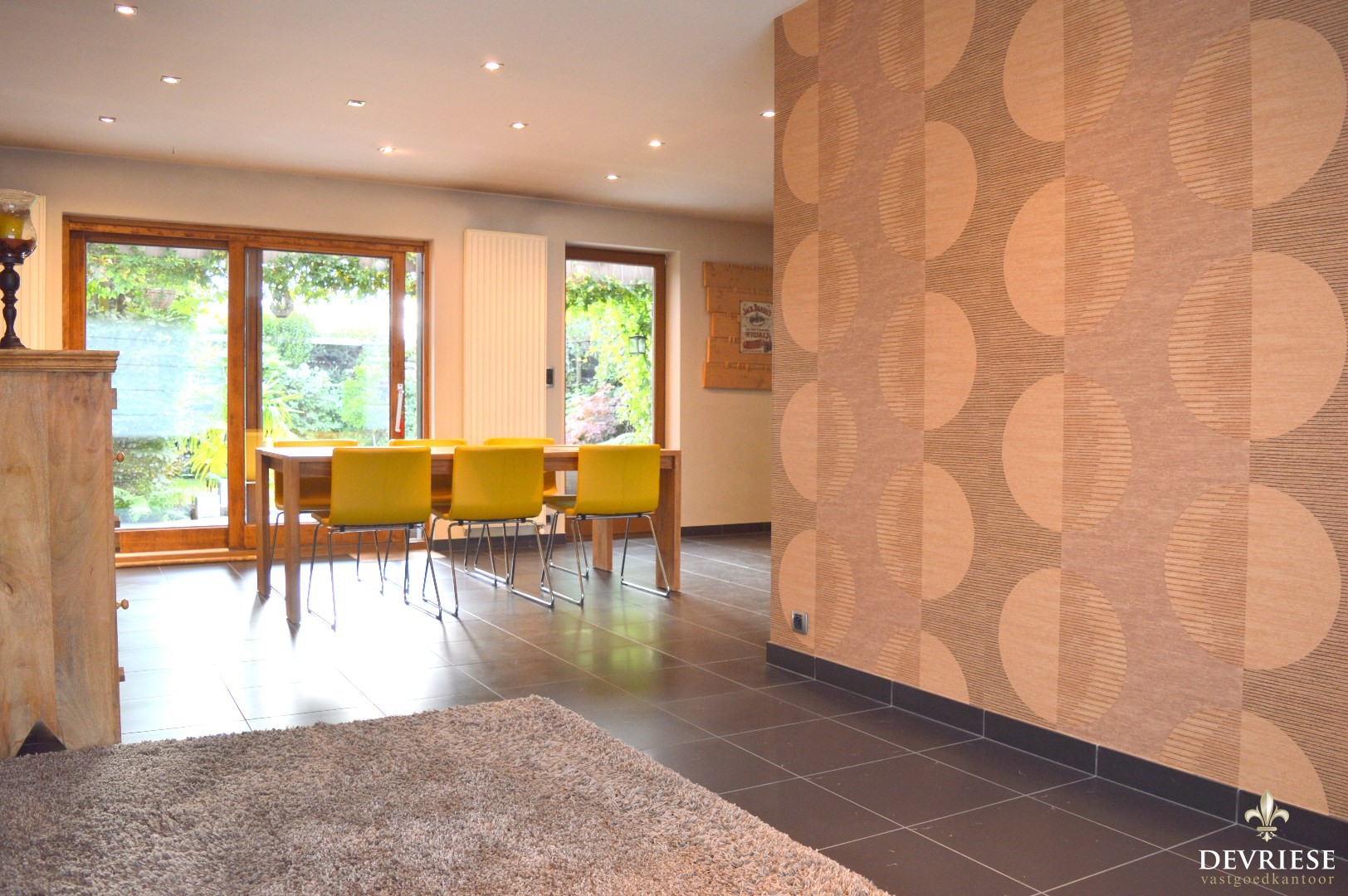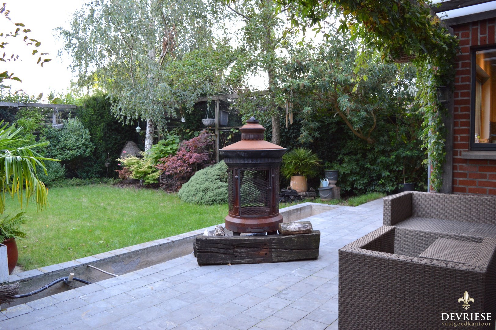 Op het gelijkvloers beschikt de woning over een aparte inkomhal met toilet die toegang geeft tot de lichtrijke leefruimte met aansluitend de ingerichte keuken en garage. Vanuit de leefruimte en keuken geniet u van het volle zicht op de prachtig aangelegde tuin, een tuin waar u volop tot rust kan komen.