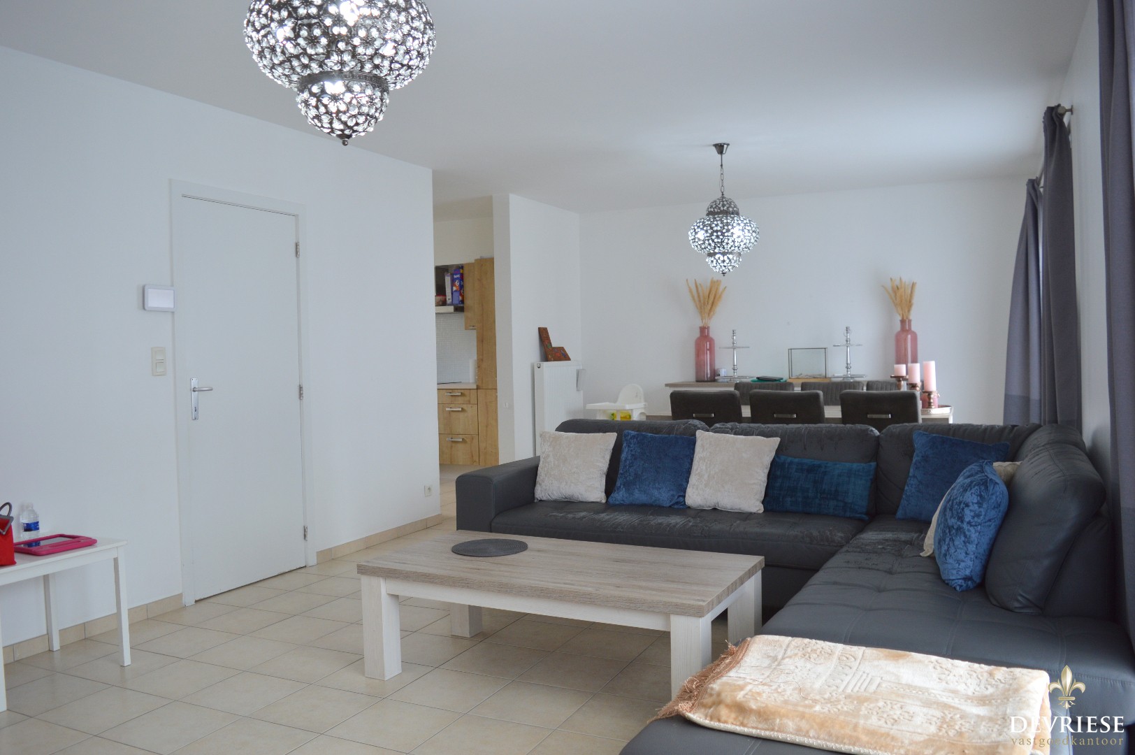 U komt binnen in de ruime inkomhal voorzien van gastentoilet en de ruime garage met aansluiting voor de wasmachine. Aansluitend is er de de lichtrijke leefruimte met open keuken voorzien van vaatwasmachine, keramische kookplaat, inbouwfrigo en inbouwdiepvries.
