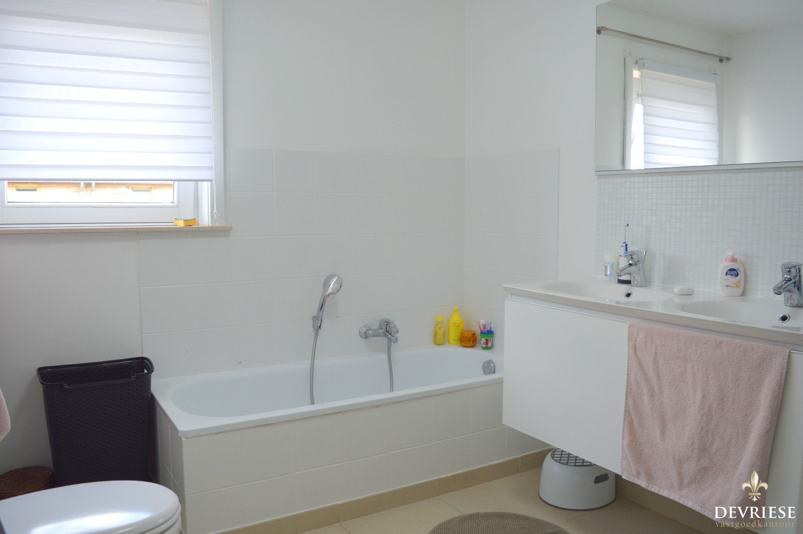 Op de eerste verdieping zijn er 3 volwaardige slaapkamers alsook de ruime badkamer met dubbele lavabo, toilet, bad en douche.