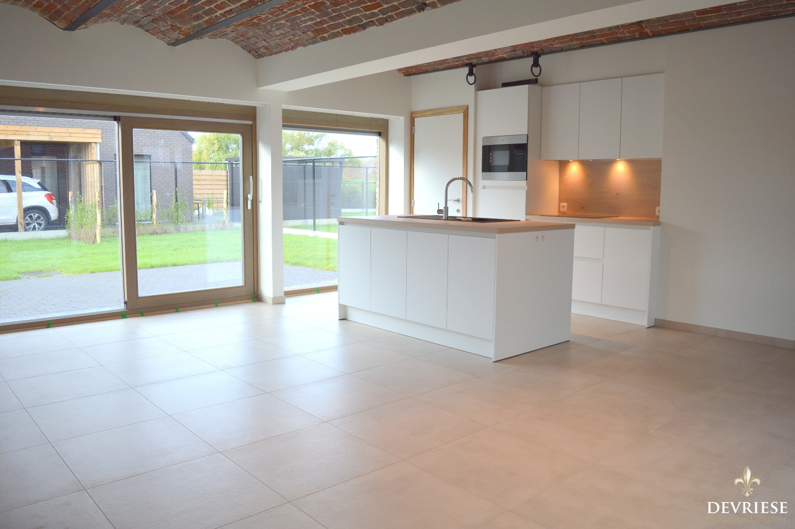 De woning beschikt over een apart toilet, de living met aansluitend de open keuken met inductiekookplaat, vaatwasmachine, microgolf en ingebouwde frigo, bergruimte met aansluiting voor de wasmachine en onderhoudsvriendelijke tuin.