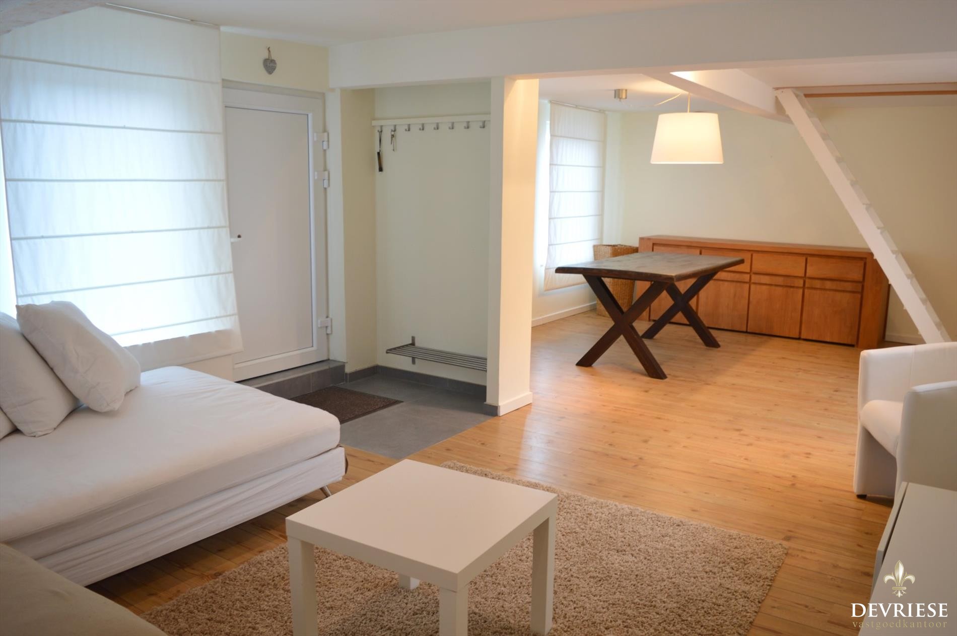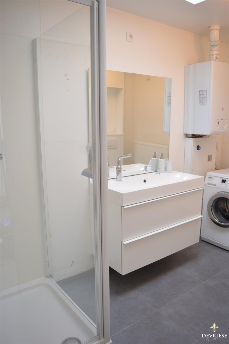 Ruime leefruimte met open ingerichte keuken, 1 zeer ruime slaapkamer over de volledige breedte van de woning en voorzien van een moderne badkamer met douche en toilet. De woning beschikt ook over een airco.