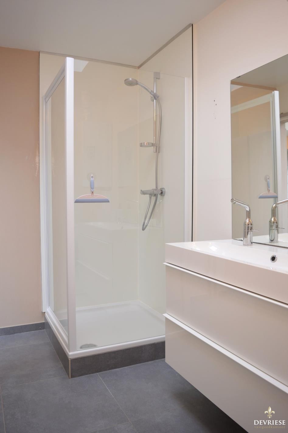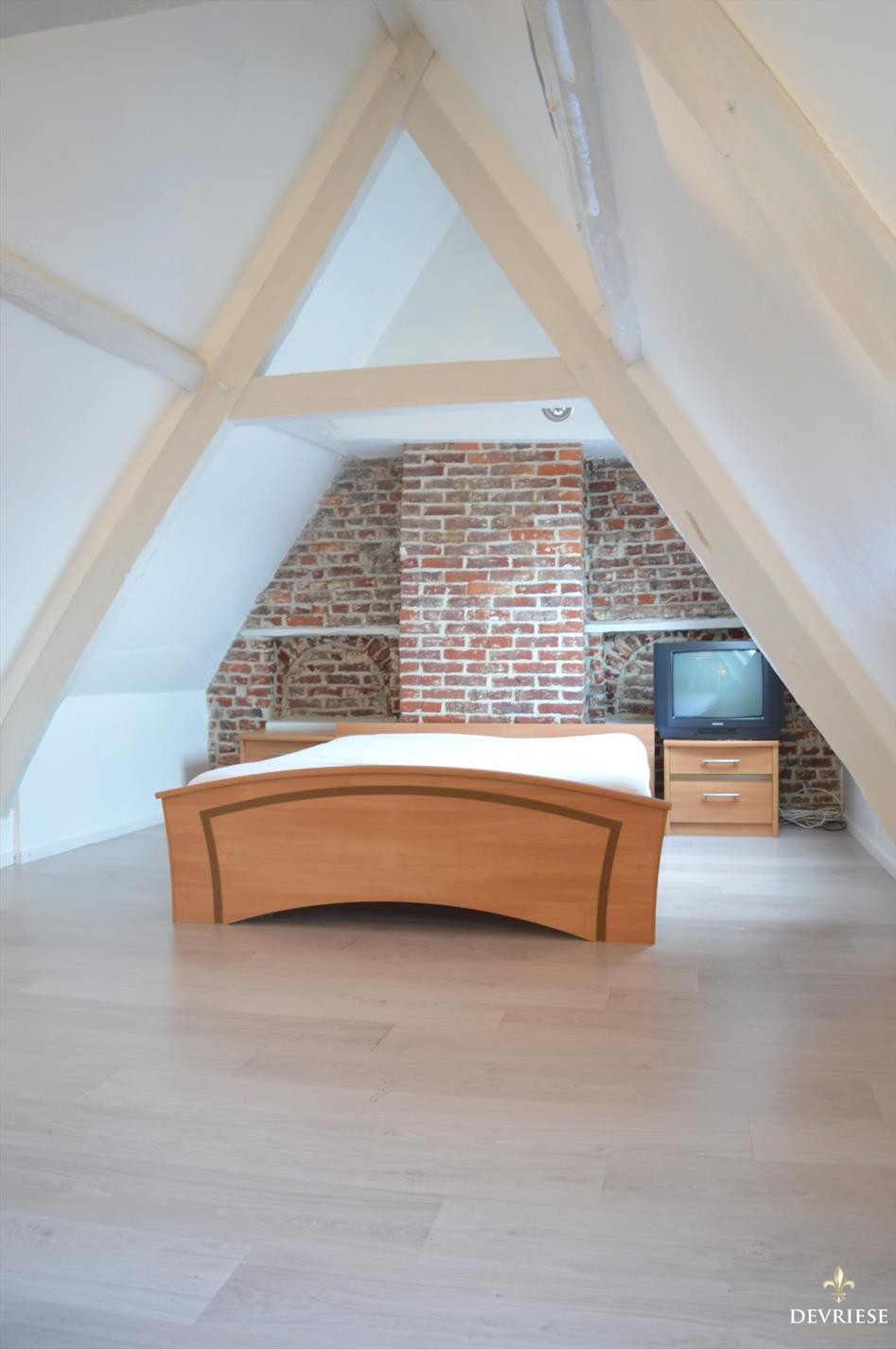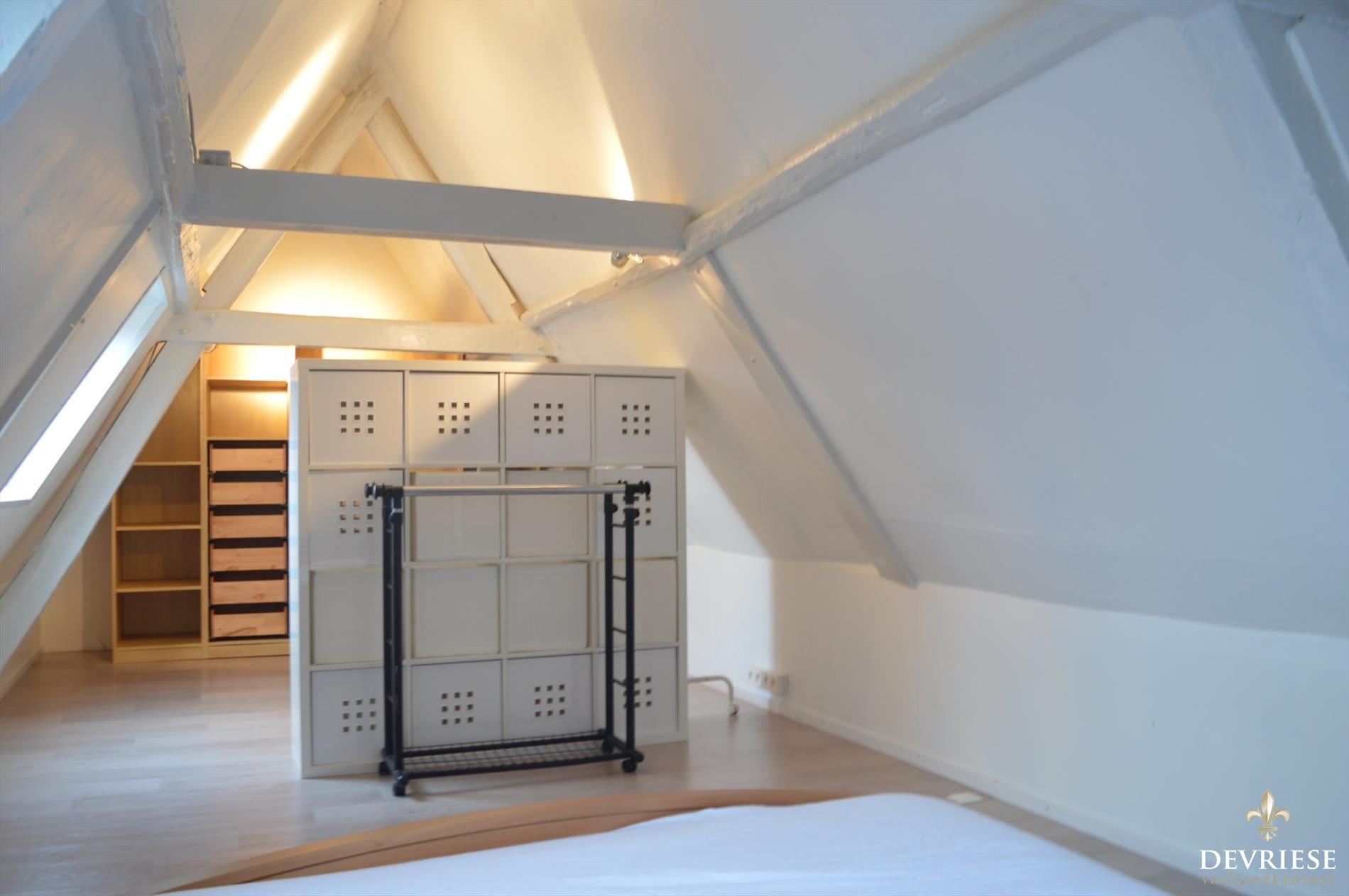 Ruime leefruimte met open ingerichte keuken, 1 zeer ruime slaapkamer over de volledige breedte van de woning en voorzien van een moderne badkamer met douche en toilet. De woning beschikt ook over een airco.