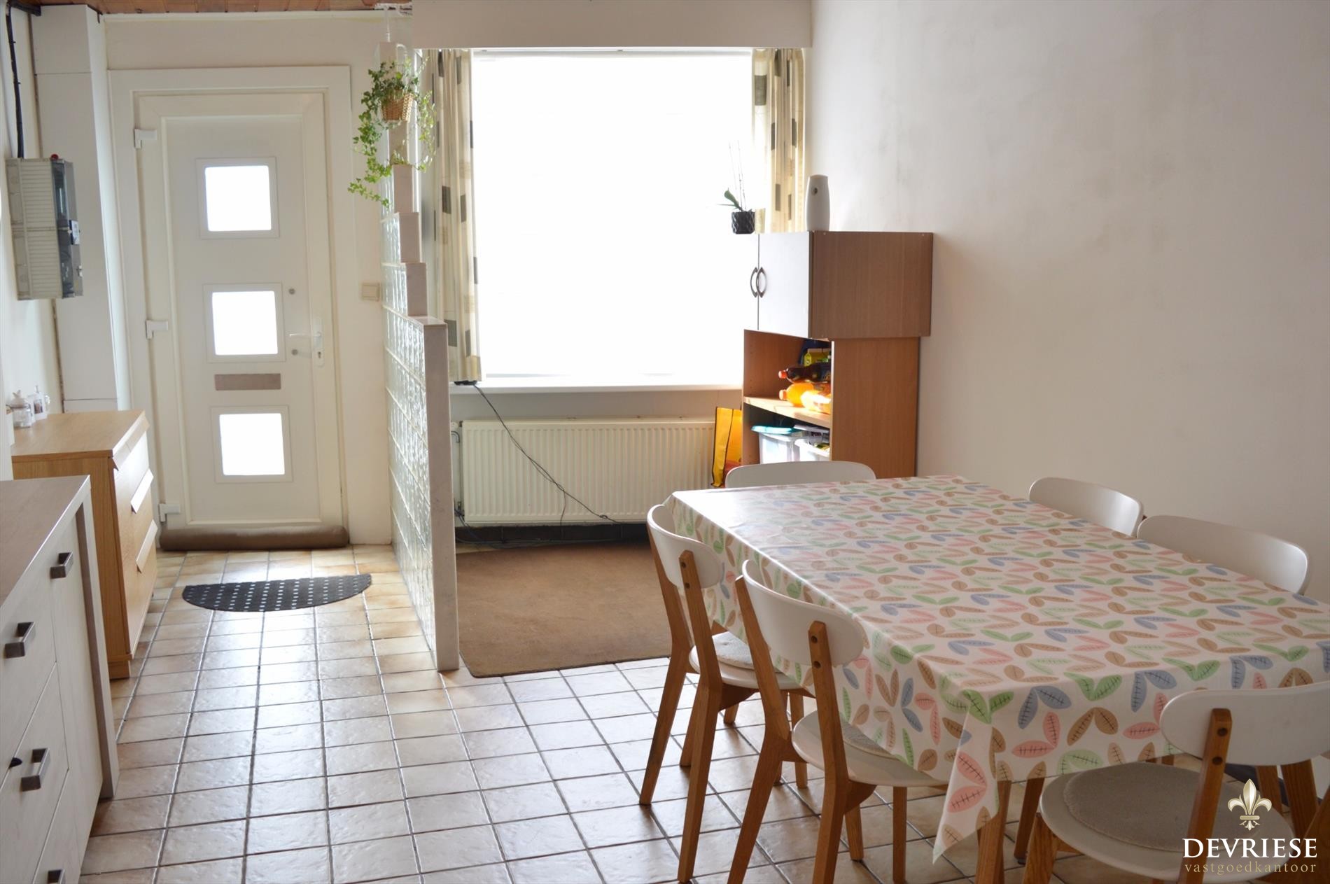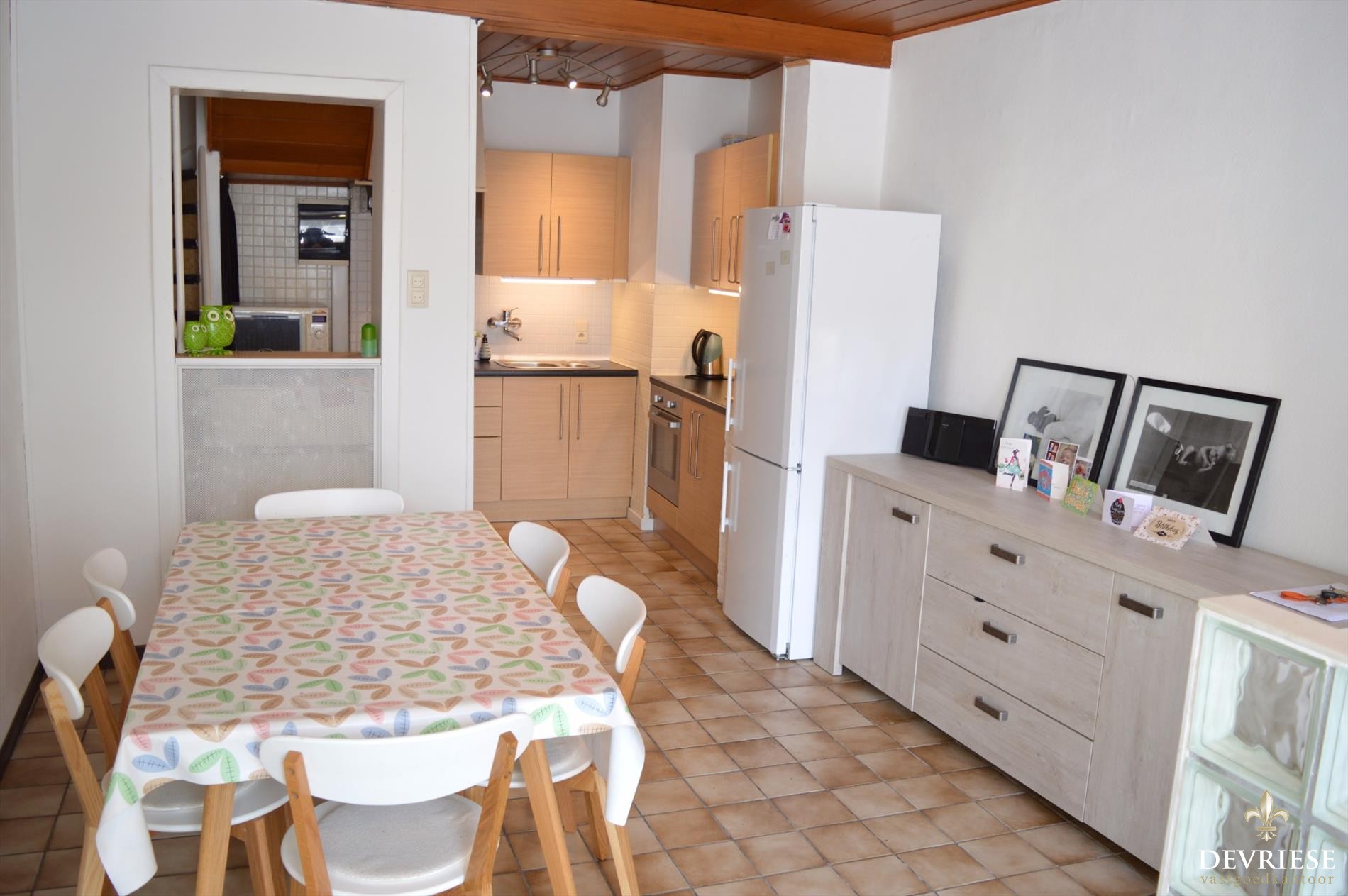 De woning bestaat op het gelijkvloers uit een inkom met een ruime eethoek (die tevens dienst kan doen als leefruimte) met aanpalend de geïnstalleerde keuken. Op het eerste verdiep bevindt zich de badkamer met een ruime leefruimte.